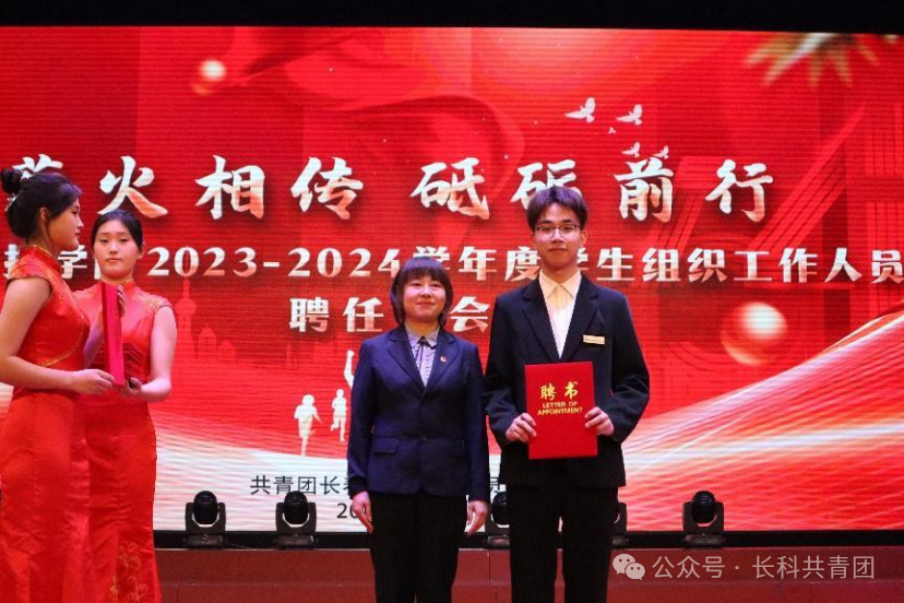 为了进一步优化长春科技学院学生组织队伍建设,更好地发挥学生组织的桥梁纽带作用,4月29日,我校团委在东鳌国际会议中心举办了“薪火相传 砥砺前行”学生组织工作人员聘任大会。