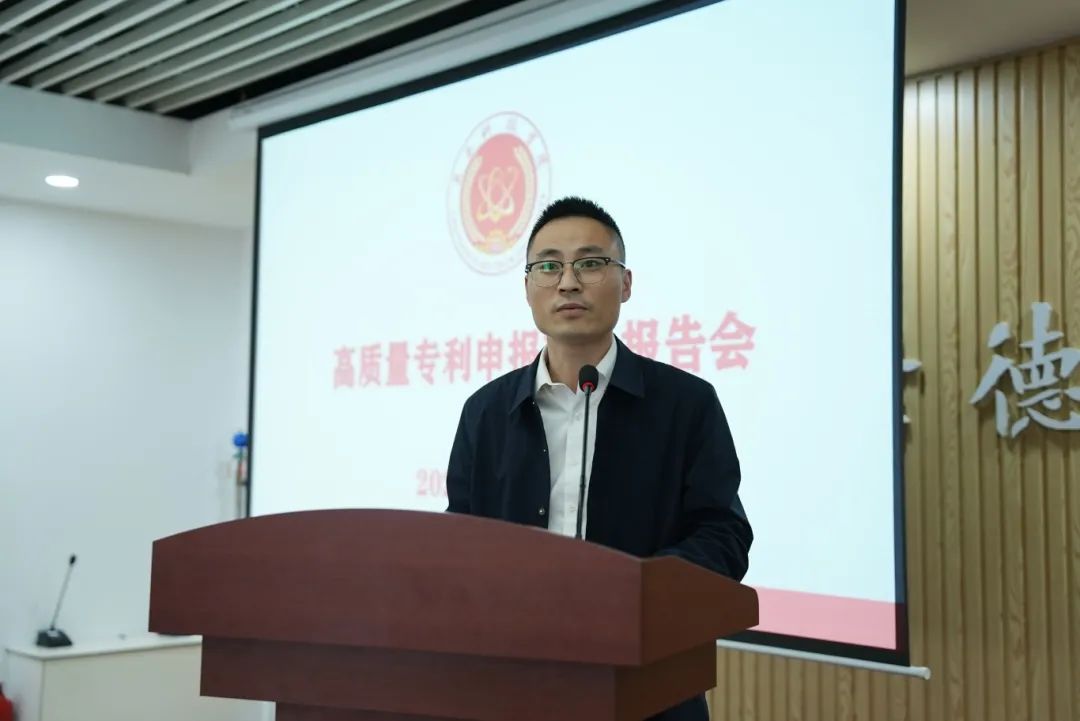 陈前表示:在当前申硕的关键时期,需要一批高水平科研成果的产出,我校始终高度重视知识产权工作,积极鼓励师生开展科技创新和成果转化,本次辅导报告会,对于提升我校师生的知识产权意识,促进科研成果的保护和转化具有重要意义。希望各位老师认真学习讲座内容,并将所学知识运用到具体的专利申报工作中,为我校科技创新和科研发展贡献力量。学校科研处也将继续为大家提供知识产权方面的服务和支持,共同推动我校知识产权事业的发展。