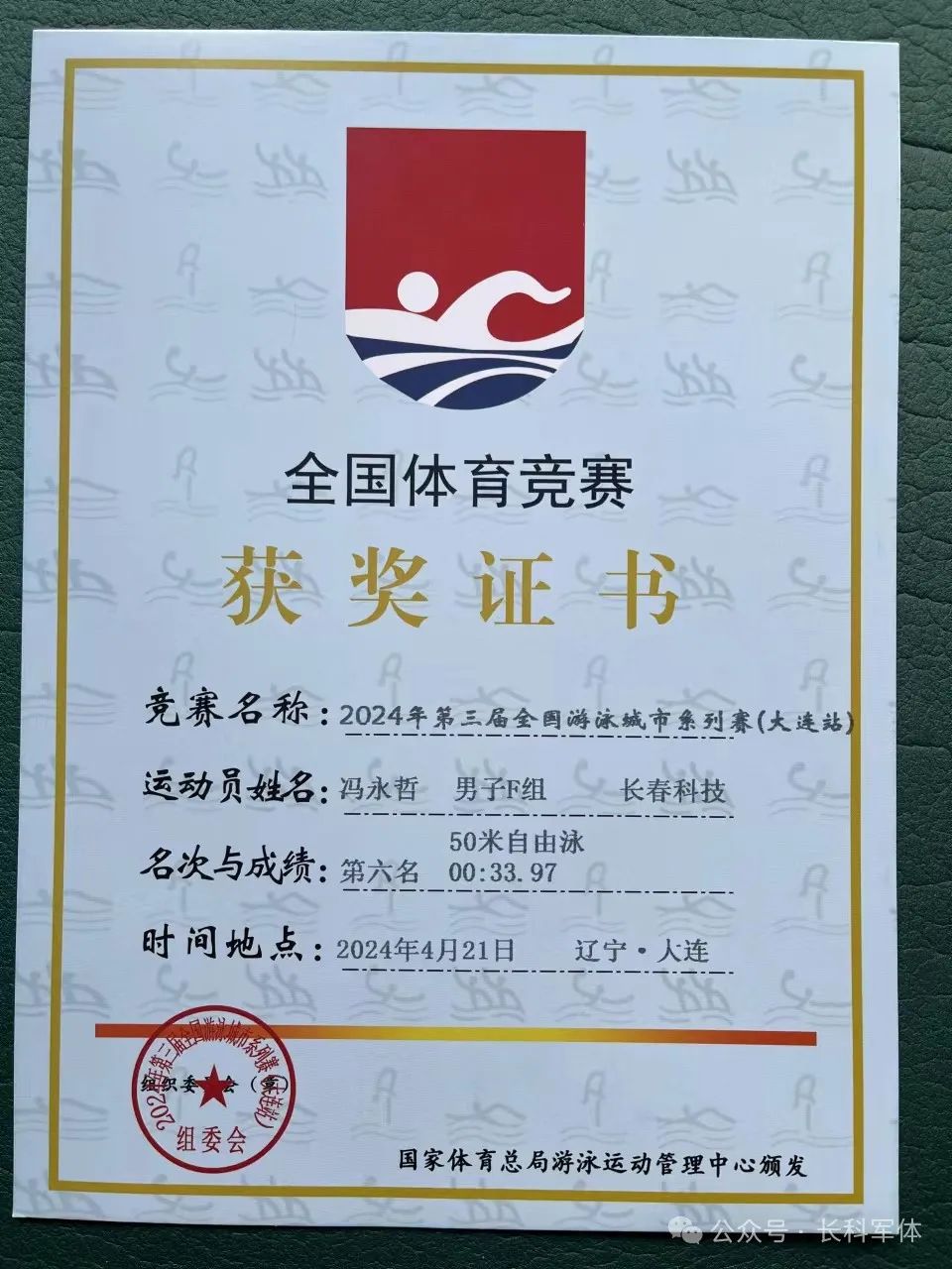 经过两天的激烈角逐,我校在2024 第三届全国游泳城市系列赛(大连站)比赛中斩获1 银 、2 铜、 4 个第四名、2 个第五名、1个第六名,全国高校组团体总分第一名的优异成绩!