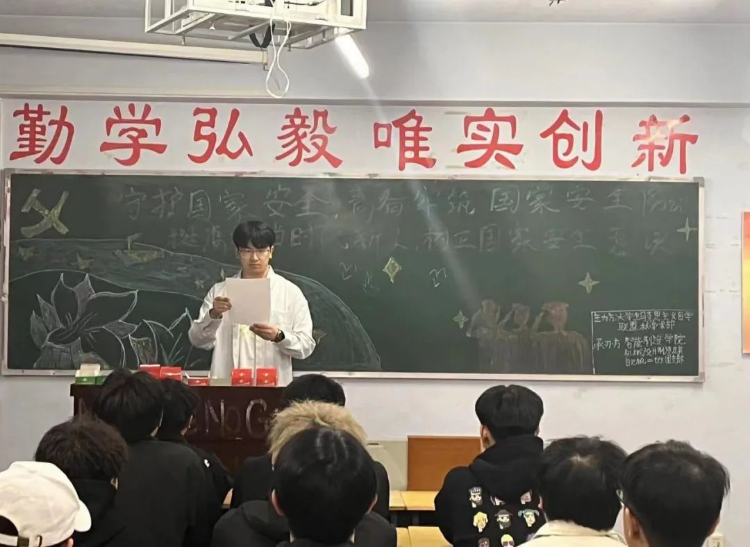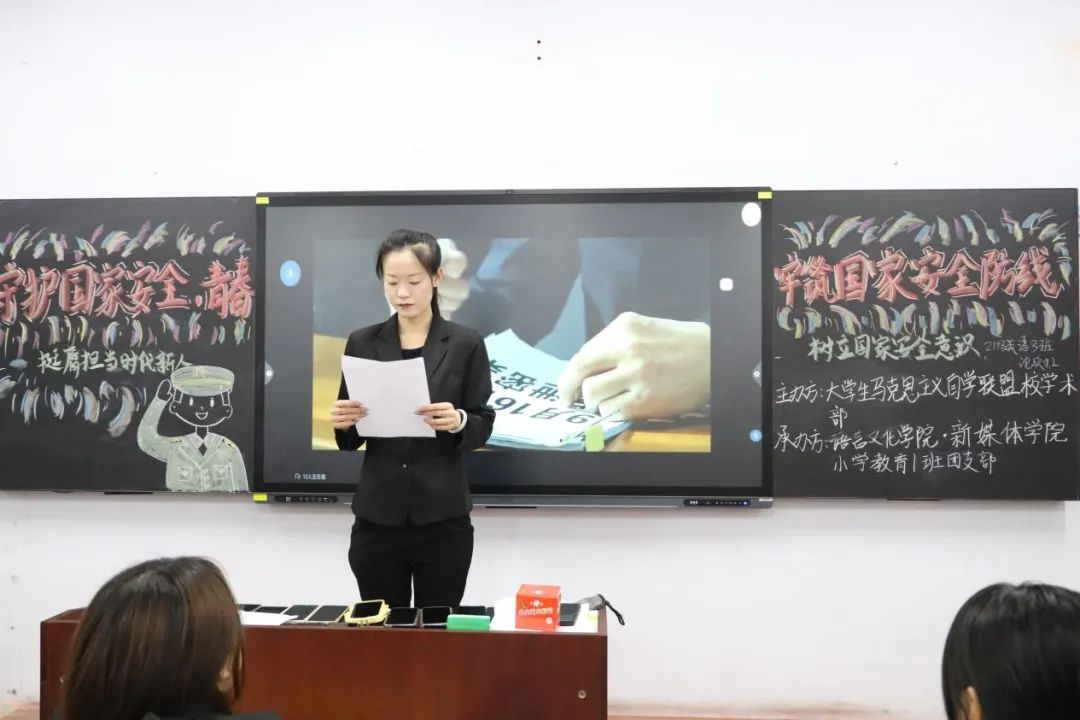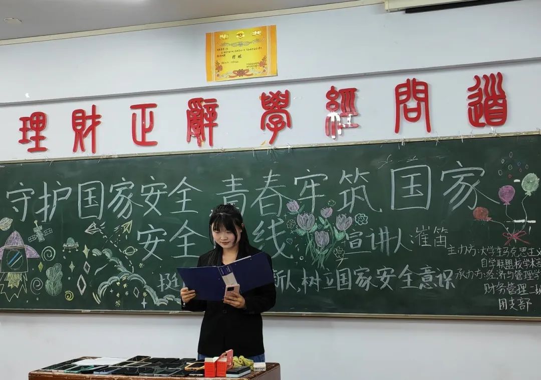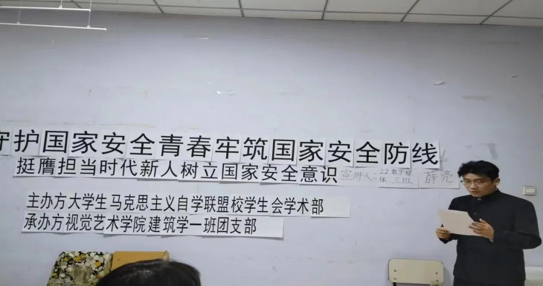 为学习贯彻习近平总书记关于坚持总体国家安全观的重要论述,引导我校学子深刻领会总体国家安全观,巩固深化青年主题教育成果,动员广大青年坚定不移走中国特色国家安全道路,为此我校团委特展开“挺膺担当时代新人,树立国家安全意识”主题团会党史宣讲活动,下面就让我们一起来看看各位党史宣讲团成员的表现吧~