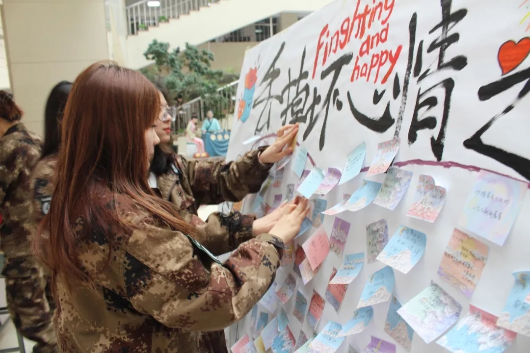 同学们纷纷积极参与活动,在思考如何鼓励他人时,同时也是给自己在未来生活中面对困难的勇气。简单的一写一贴一放,对应了同学们心态的转变,他们通过“丢掉负能量”的举措,给予自己积极的暗示,并写下对未来的期许。生活学习中唯有勇敢面对,以包容开放的心看待世间万事万物,我们才会发现,这个世界远比我们想象得宽广。