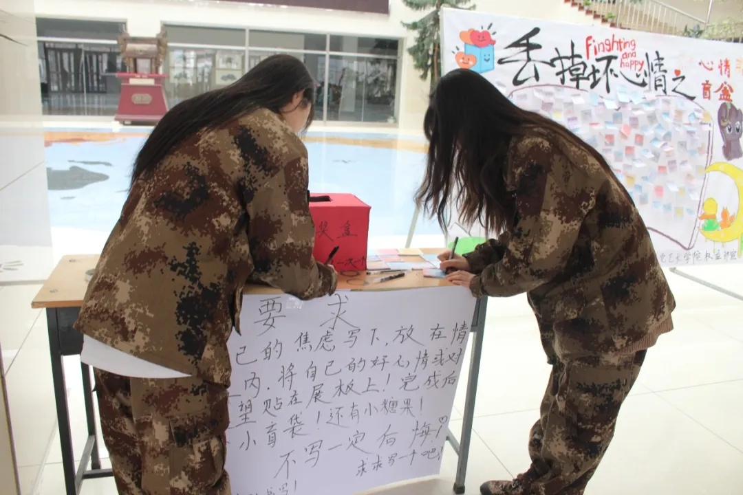 活动期间,每位参与活动的同学都十分积极,把自己在学习或生活中的烦恼通过便签来表达出来。在写下鼓励他人的话语投放到盲盒中时,同学们自己也受到鼓舞,这正映照了那句“赠人玫瑰,手有余香”的经典话语。敢于宣泄负面的情绪,不仅是对压力的一种释放,还是给予自己更强大的力量面对未来生活中的重重挑战。