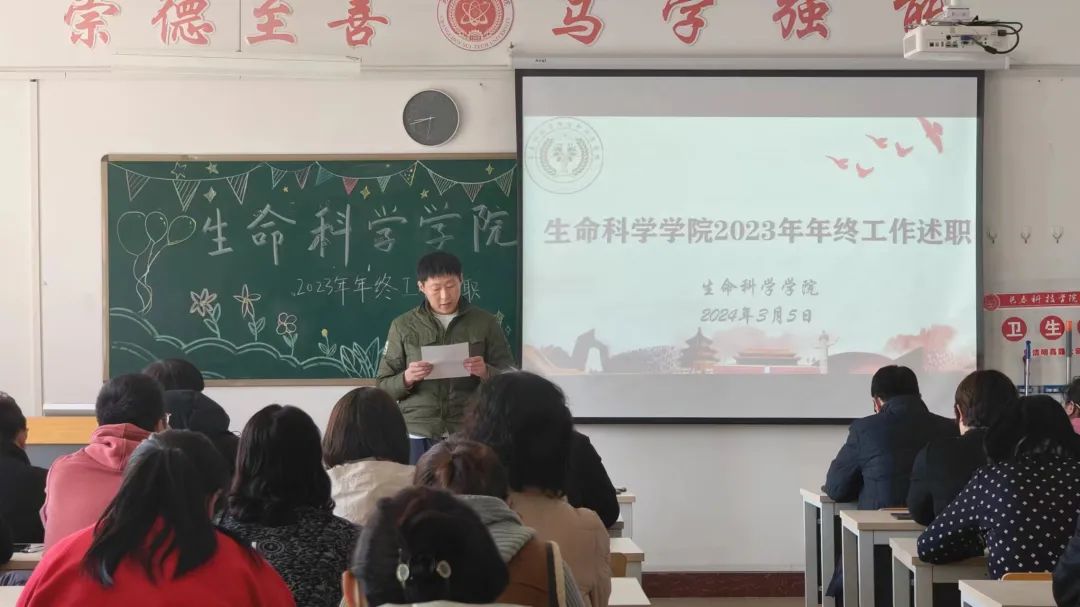 根据长春科技学院《关于开展2023年度年终考核工作的通知》要求,全面、公正、客观地评价教师年度工作实绩,生命科学学院于2024年3月5日下午1点在4513教室召开了全院教师2023年度工作述职评议会。