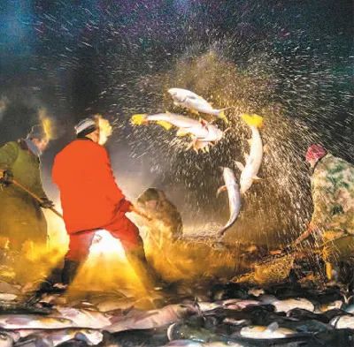 来到查干湖渔业有限公司鱼产品超市,一排排从湖中打上来的鱼在这里码成高高的冻鱼垛,一辆辆装鱼、运鱼的大车往来穿梭,几百万斤鱼从这里发往全国各地。