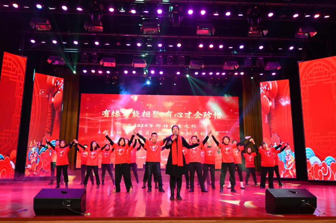 联欢会节目涵盖歌曲、舞蹈、创意节目、武术等多种节目形态,现代时尚元素与传统文化相结合,酷炫时尚,给现场观众带来了一场视听盛宴。节目演出过程中,还安排了团拜、董事长为龙年出生的员工发放新年礼物、领导班子成员发放糖果、现场抽奖,面对面建群微信发红包等互动环节,意外惊喜让现场观众热情大涨,气氛一浪高过一浪。