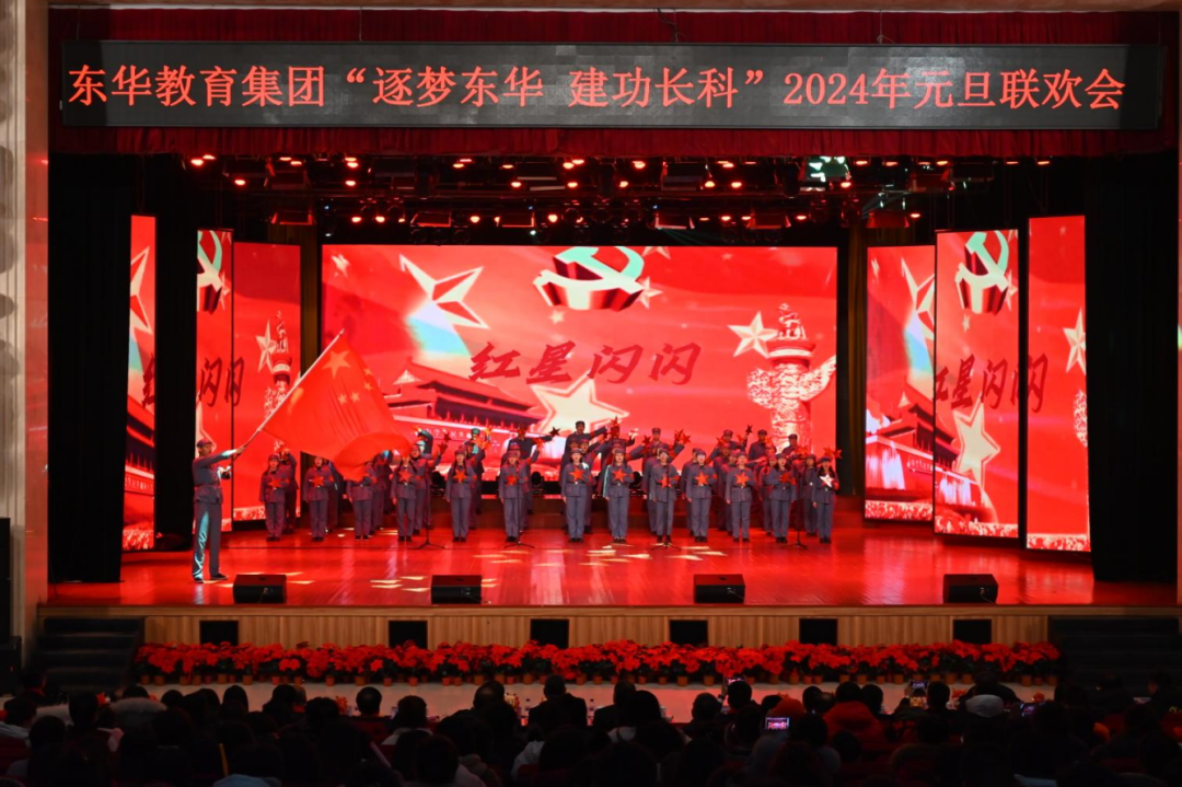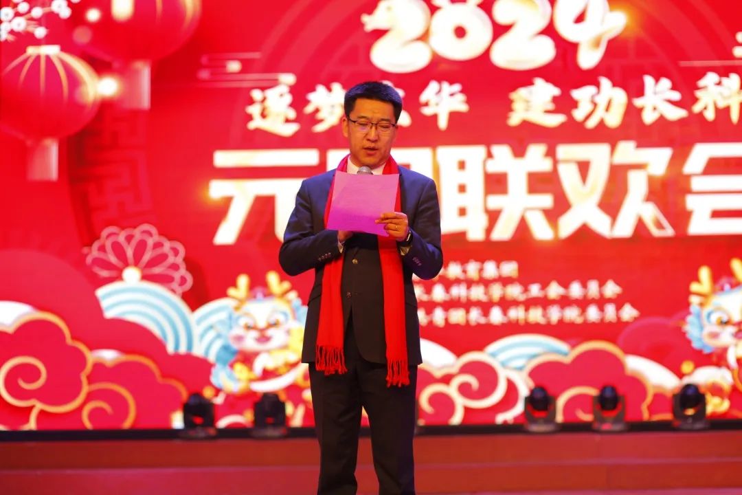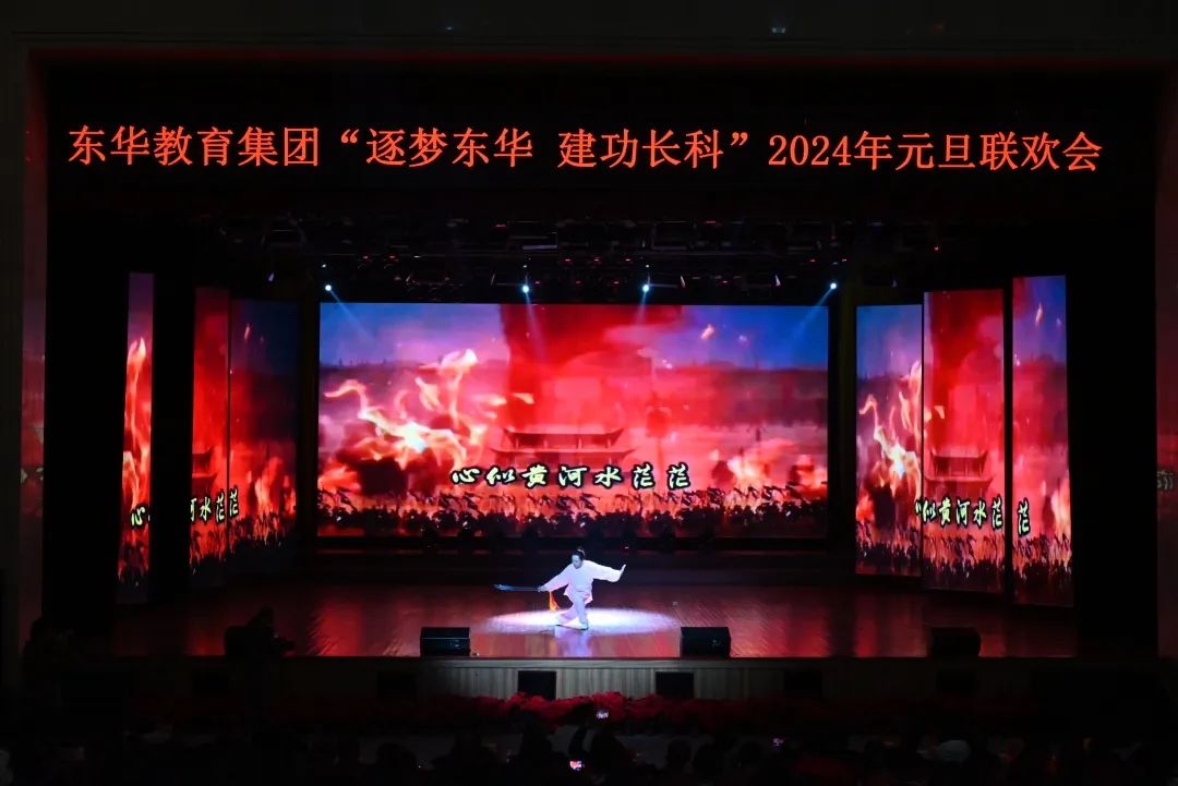 在热烈的掌声中,张电达代表东华教育集团向集团所属的教师员工致以诚挚的问候和新年祝福。校长栾立明发表新年致辞,概要总结了过去一年取得丰硕成果,令人鼓舞。展望新的一年,他期望大家团结一心,共同努力,为学校的发展做出更大的贡献。