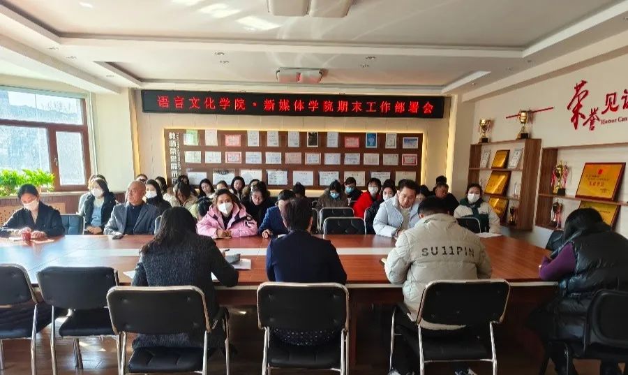 2023年12月7日12:00,语言文化学院·新媒体学院于第一教学楼217会议室召开期末工作部署会,语言文化学院·新媒体学院院长,副院长王巍,学工办主任、分团委书记张贺亮,各专业主任,各年级辅导员老师以及全体教师参加。