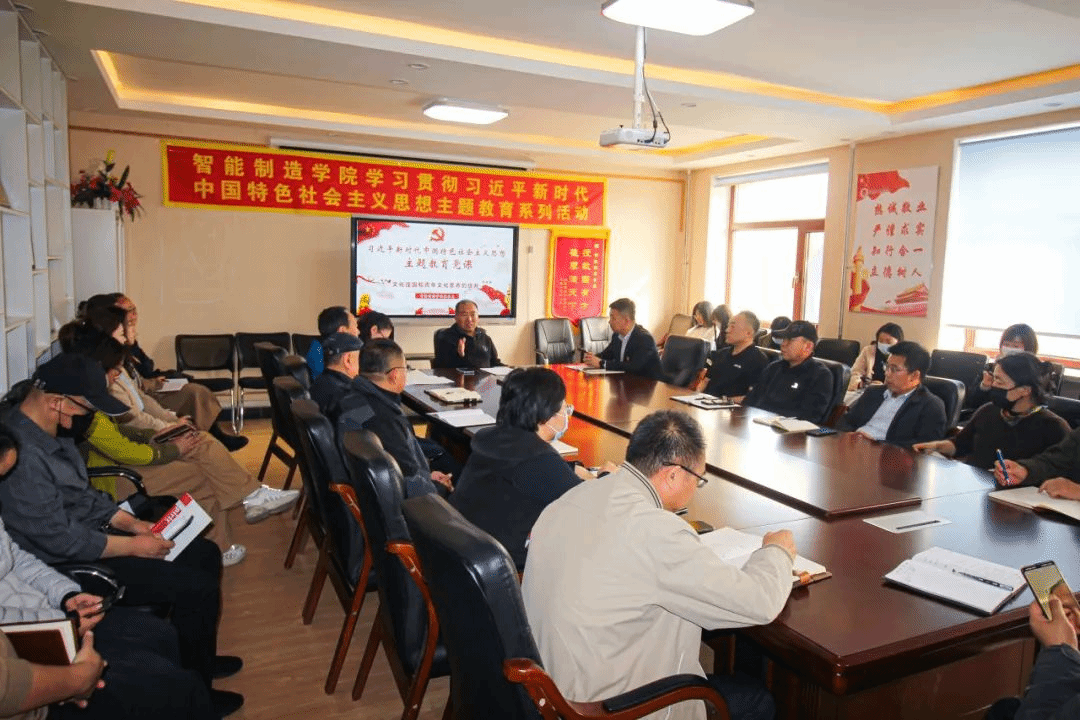 为进一步推动学习贯彻习近平新时代中国特色社会主义思想主题教育走深走实,加强全体教师党员的党性修养,11月2日,智能制造学院开展习近平新时代中国特色社会主义思想主题教育专题党课——"文化强国和青年文化素养的提升"。党课由智能制造学院院长杨继同志主讲,全体教师党员参与了本次党课学习。