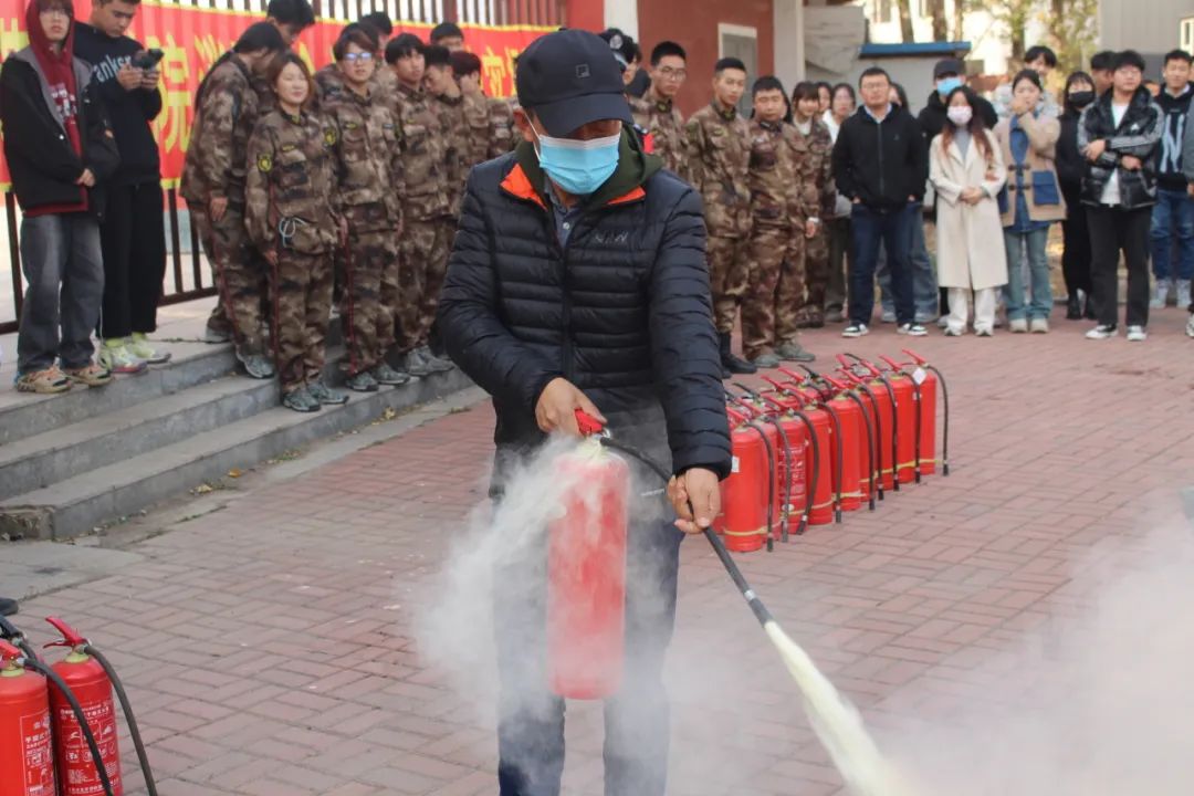 活动第三项,学院教师和学生安全员在专业人员的指导下进行实操演练。他们在李文成院长的带领下,按照规范动作依次进行操作。他们踊跃尝试使用灭火器材,通过实操进一步提升了初起火灾应急处置本领。