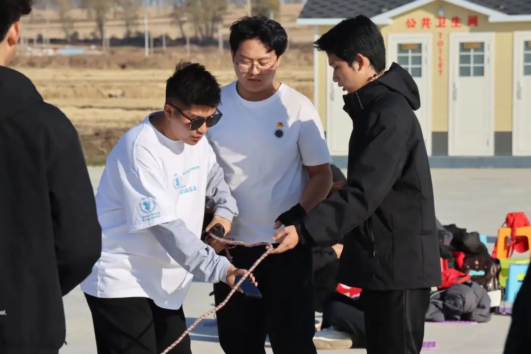 进行短暂的休整后,薪火志愿服务队进行了踢键子、跳大绳、鼓动人心、你画我猜等娱乐拓展活动。在本次活动中,薪火志愿服务队成员们深刻掌握到“团队,合作,自信”的精髓以及明白作为团队一员所要承担的责任,为以后的“三下乡”实践活动奠定了一定的感情基础。
