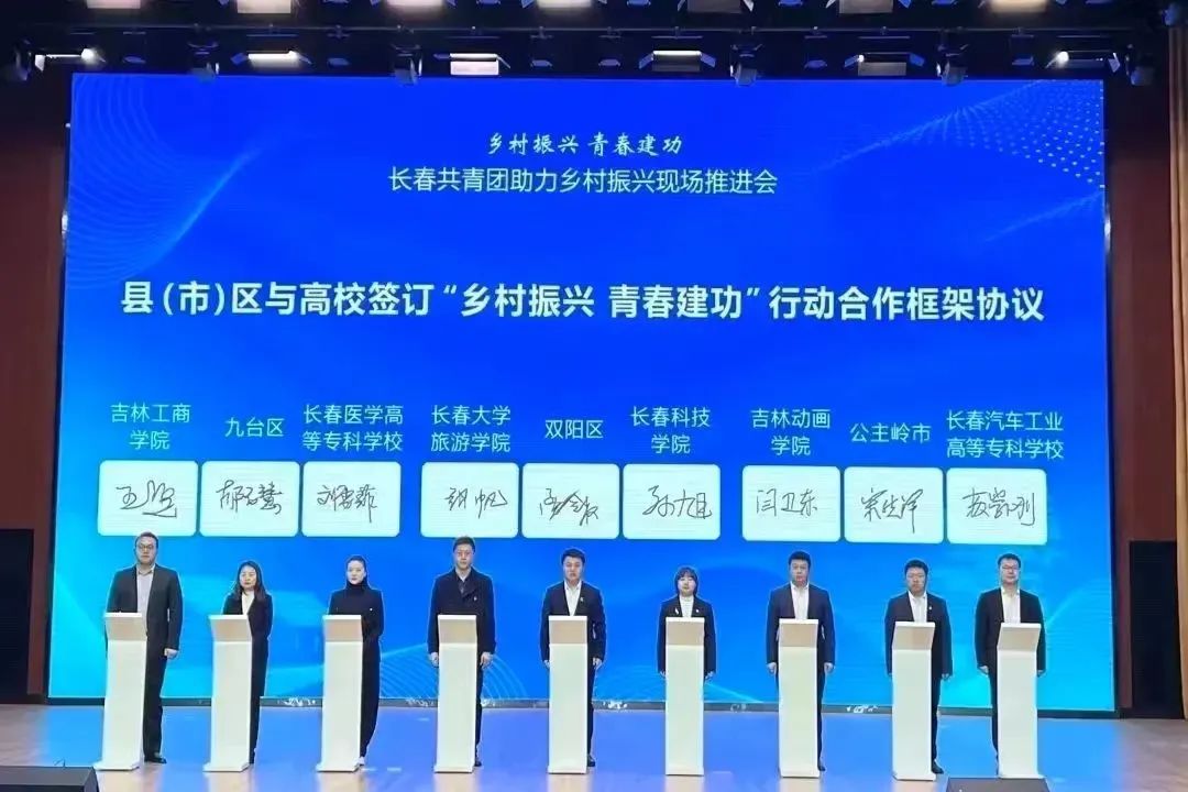 仪式上,6个县(市)区同12所驻长高校签订了“乡村振兴 青春建功”行动合作框架协议。团委副书记孙旭与双阳区团区委签署了此项协议。