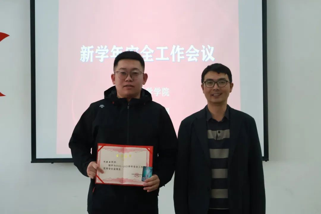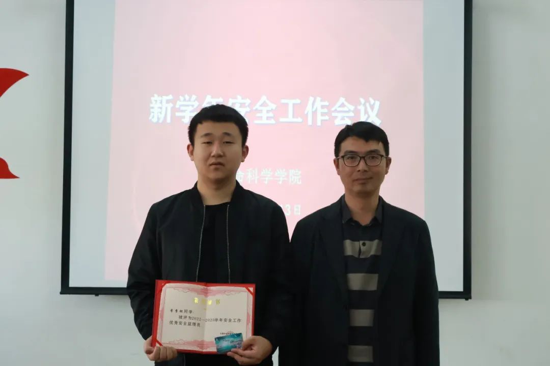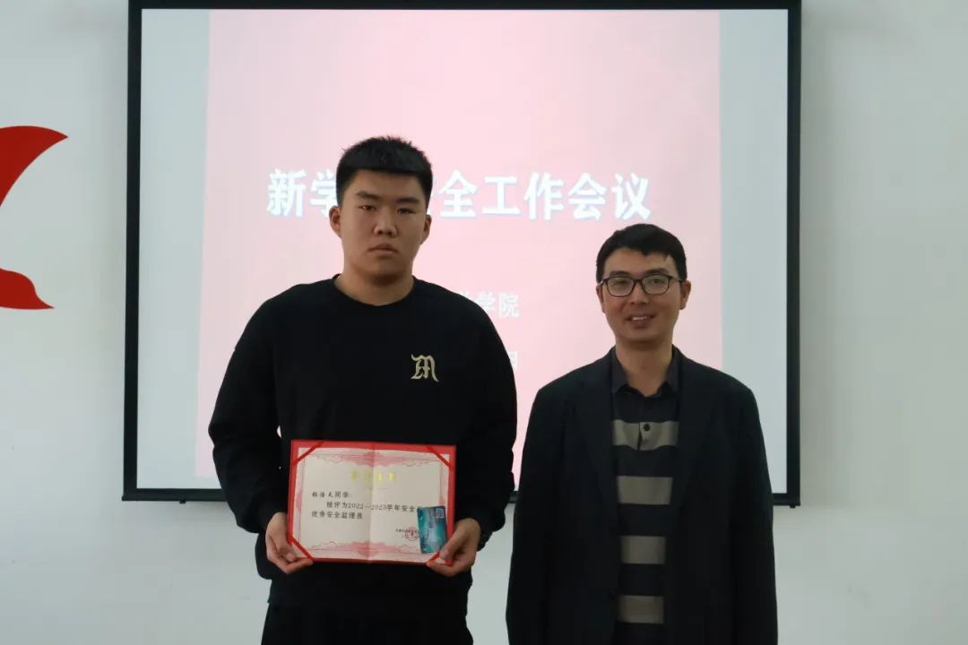 最后,李鑫岩副书记为获奖的五名同学颁发奖状。他希望受表彰的同学能够继续保持优秀的工作状态和卓越的表现,同时鼓励其他同学以他们为榜样,积极参与到学校的安全管理工作中来。