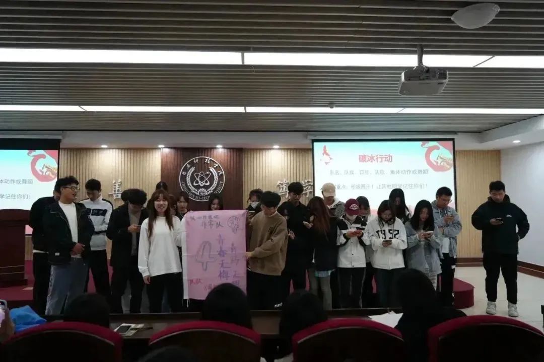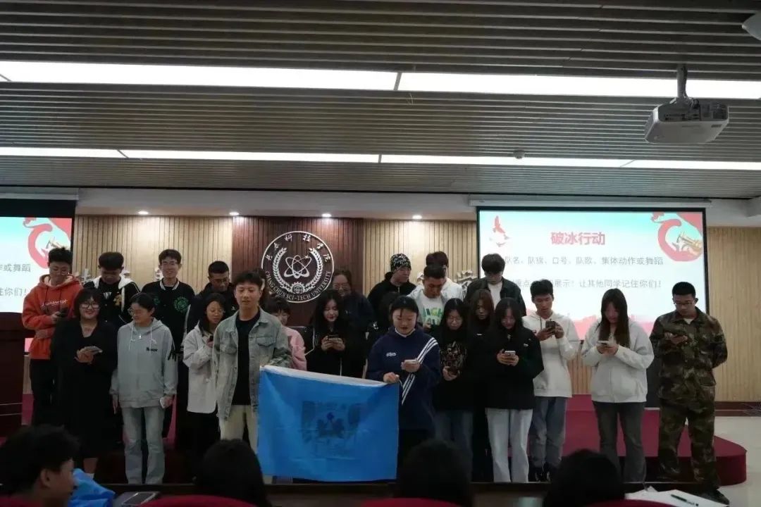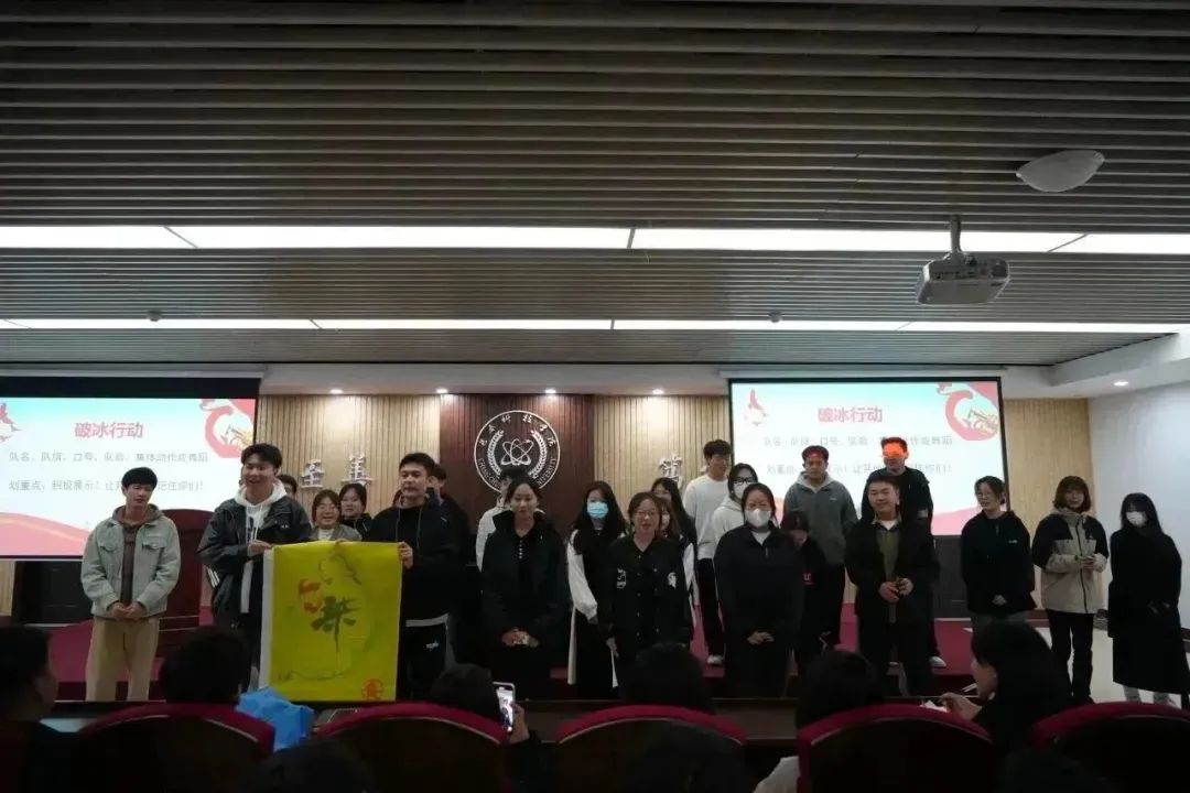 10月9日下午,2023年青马培训班进行了本学期第一次活动,首先由班主任团委宋琳老师主持并介绍本学期的培训内容及要求,随后正式进入“破冰”环节。各班同学通力合作,绘制了本班班旗,并依次向大家展示了独特的队伍自我介绍与别具一格的队伍风采。