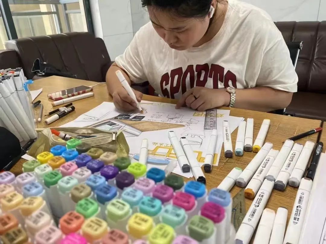 平面设计技术项目(世赛)赛项参赛选手韩雯乐每天上午八点准时开始集训,根据当天的任务安排和项目训练完成情况结束训练。初期到晚上10点钟左右,随着比赛时间临近,经常到凌晨,仍觉得时间不够用。从初入门时对技能大赛的懵懵懂懂,到技术技能的提升,她放弃一个又一个节假日,沉下心,埋下头,磨炼技能,技能水平不断提升。