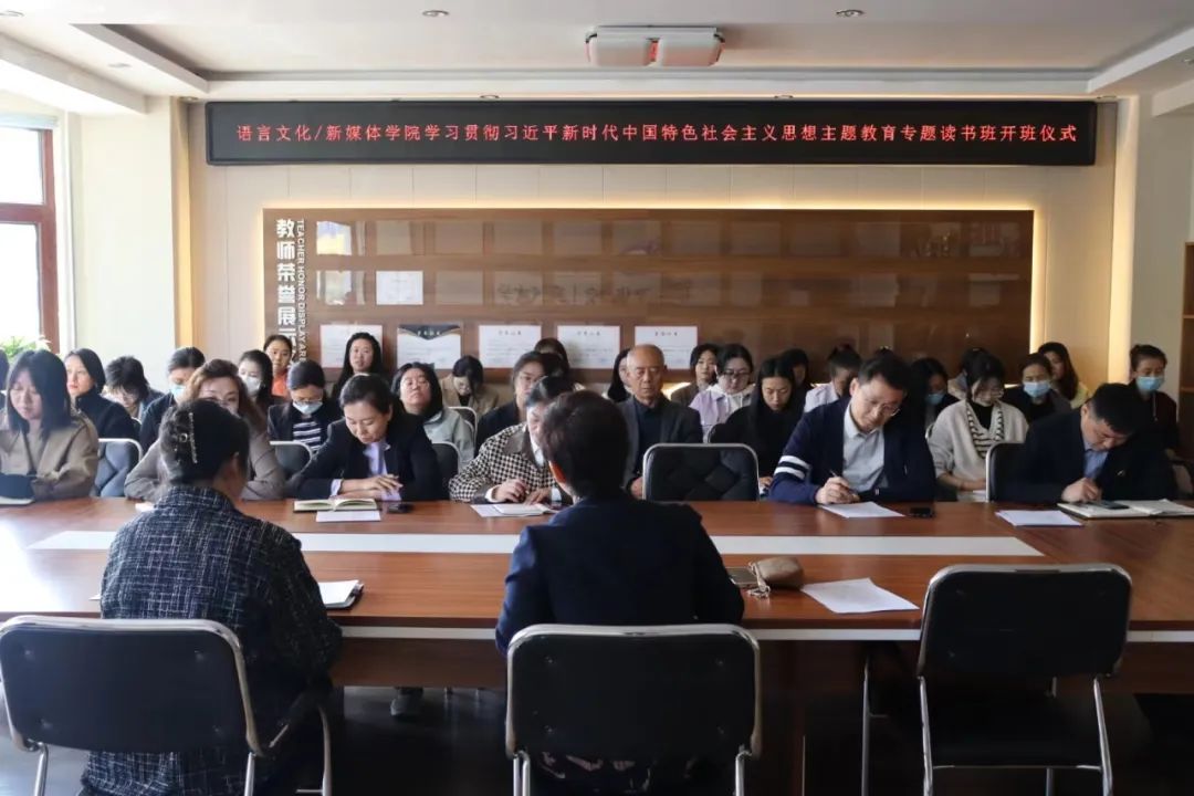 2023年10月13日12:00,语言文化学院于第一教学楼217会议室举行学习贯彻习近平新时代中国特色社会主义思想主题教育专题读书班开班仪式。语言文化学院领导班子及党总支全体教师党员参加。