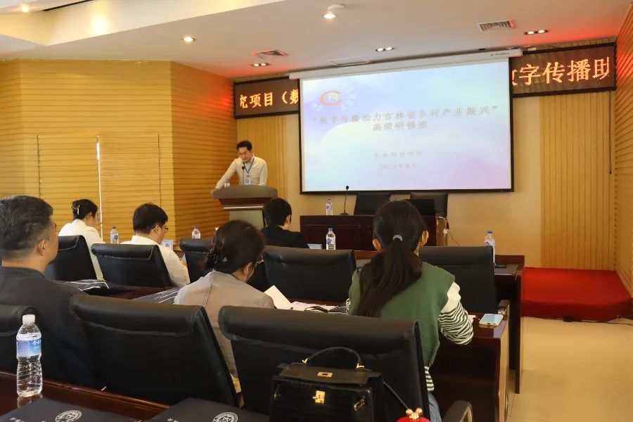 大家在御龙温泉广场雕塑前合影留念后,长春科技学院语言文化/新媒体学院网络与新媒体专业主任张卫亮作《吉林省乡村振兴政策解读及思考》主题报告。通过解读国家乡村振兴战略及创新路径和案例,梳理了数字乡村文化发展的现状和困境,分析新媒体数字传播对于乡村振兴的助力作用,并给出乡村文化振兴新媒体数字传播的具体策略,包括拓展乡村文化内容呈现形式、多角度挖掘乡村文化资源、增强乡村居民主体性作用、提高乡村文化对外传播效果、构建数字空间乡村文化认同等,以此为我国数字乡村文化振兴提供理论经验和发展策略,结束后并最终布置了研修班作业任务。
