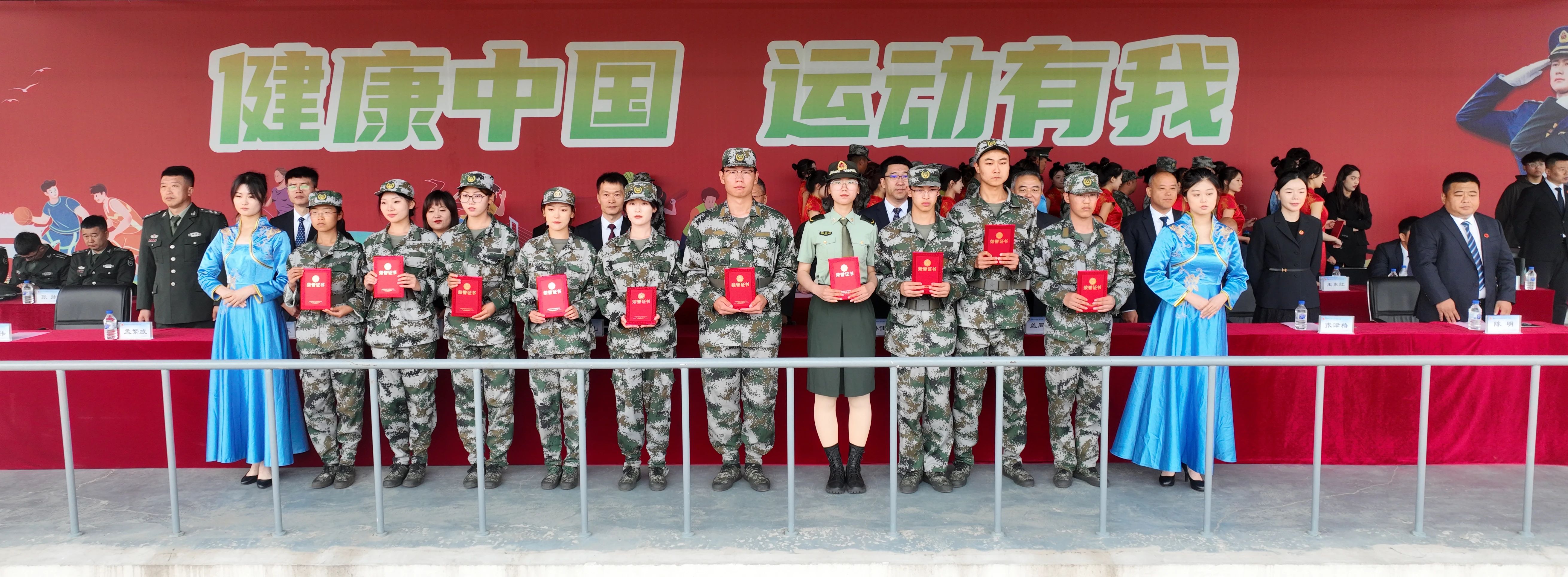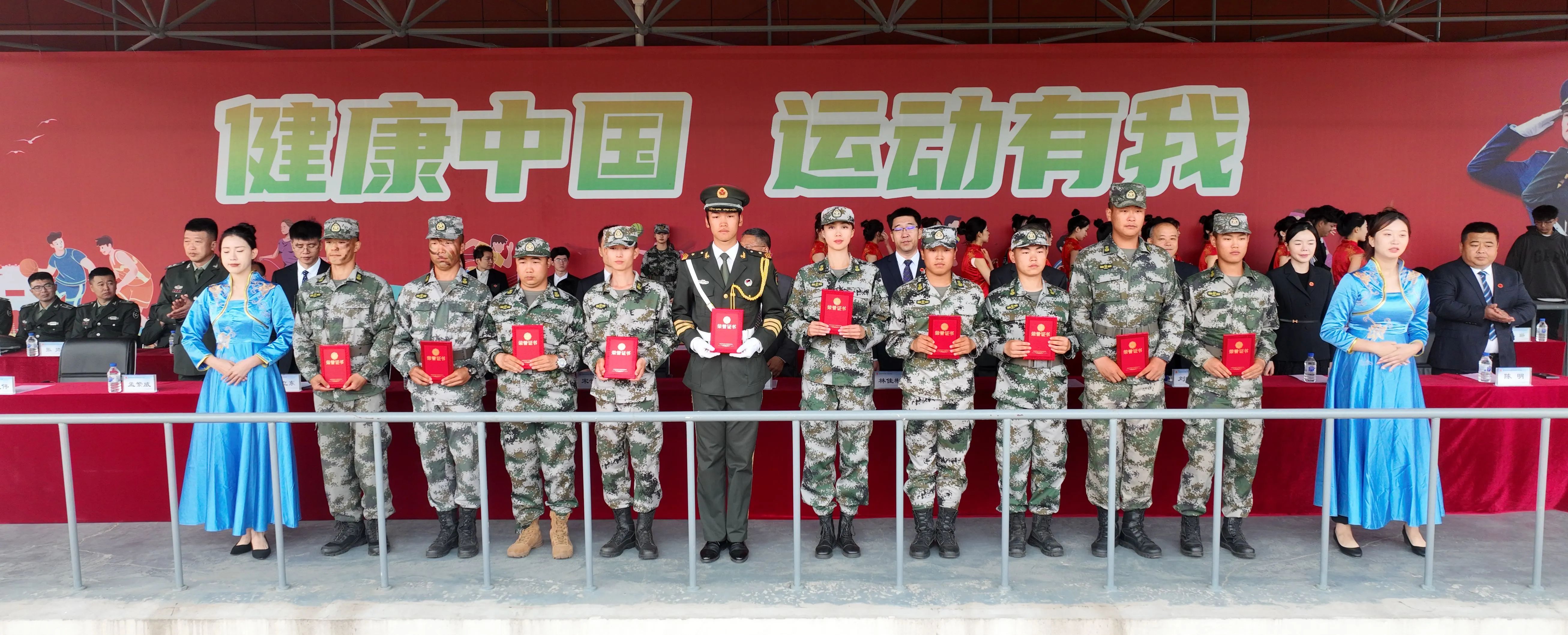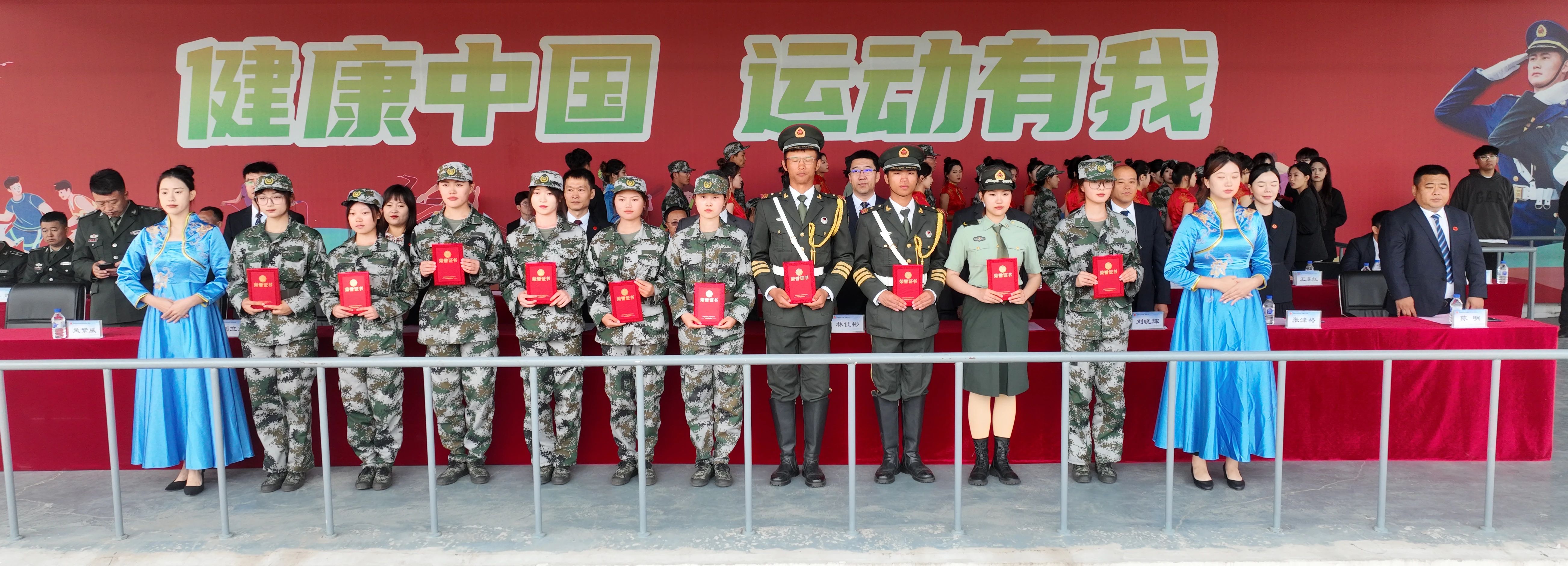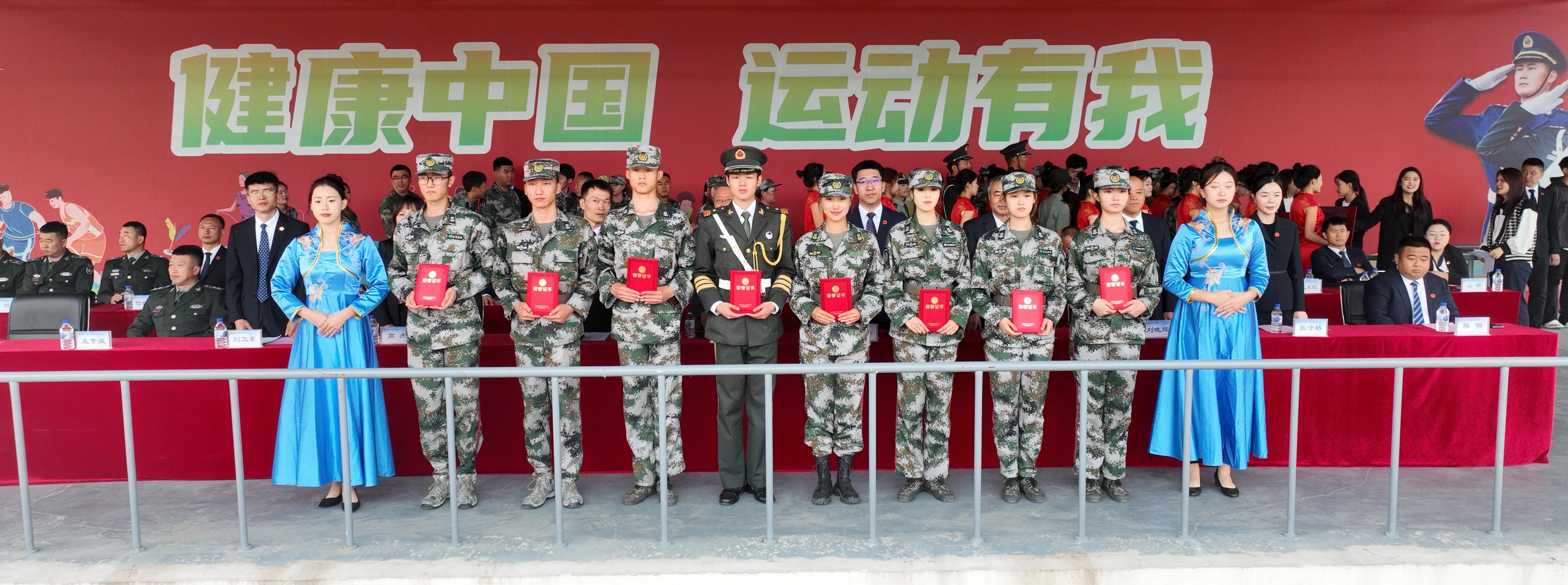 期间,主席台就坐领导为预备役士兵授衔。为优秀训练标兵、内务标兵、军训教官、预备役教官、旗手、连队、指导员颁发了奖牌、荣誉证书。
