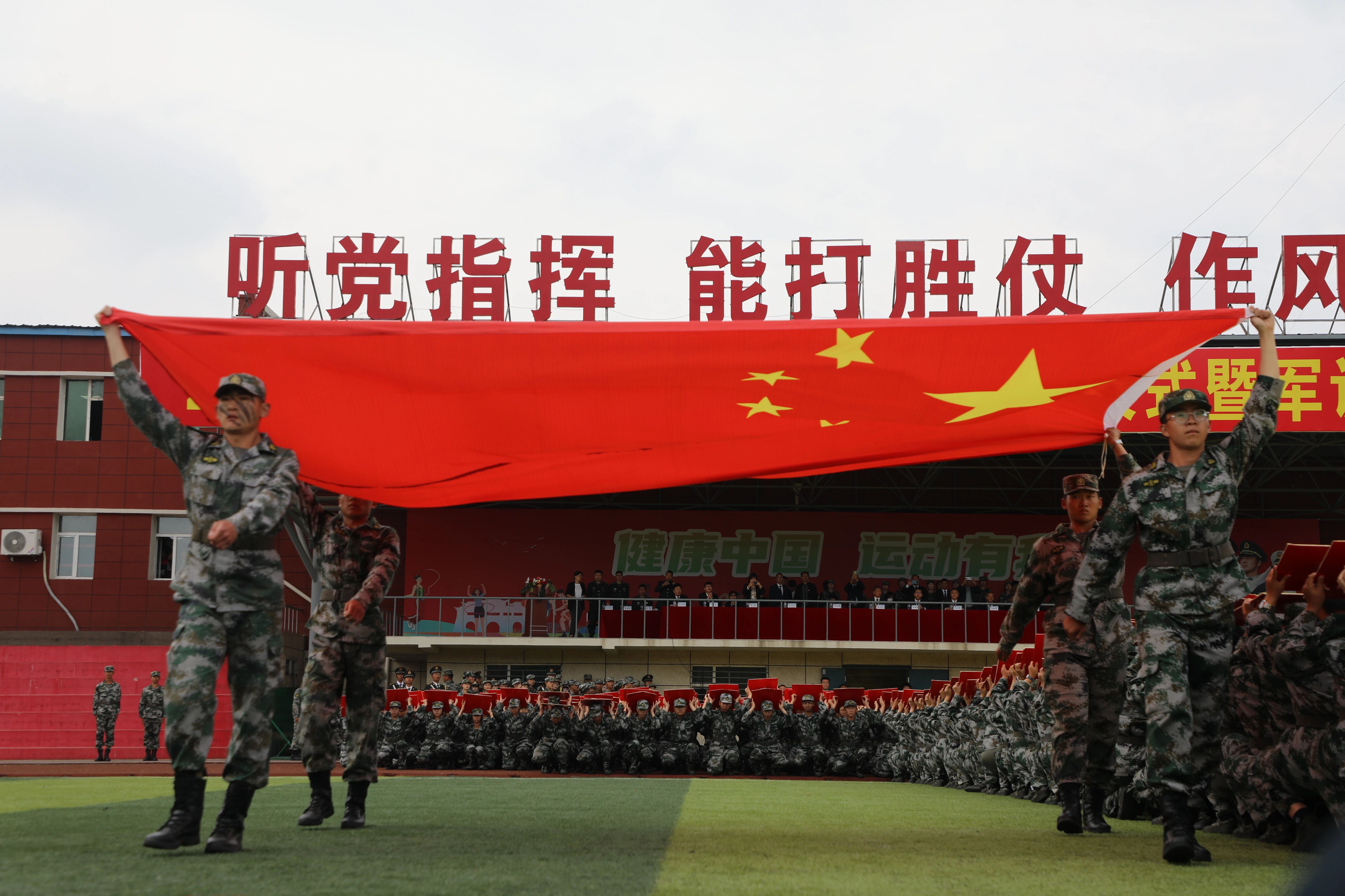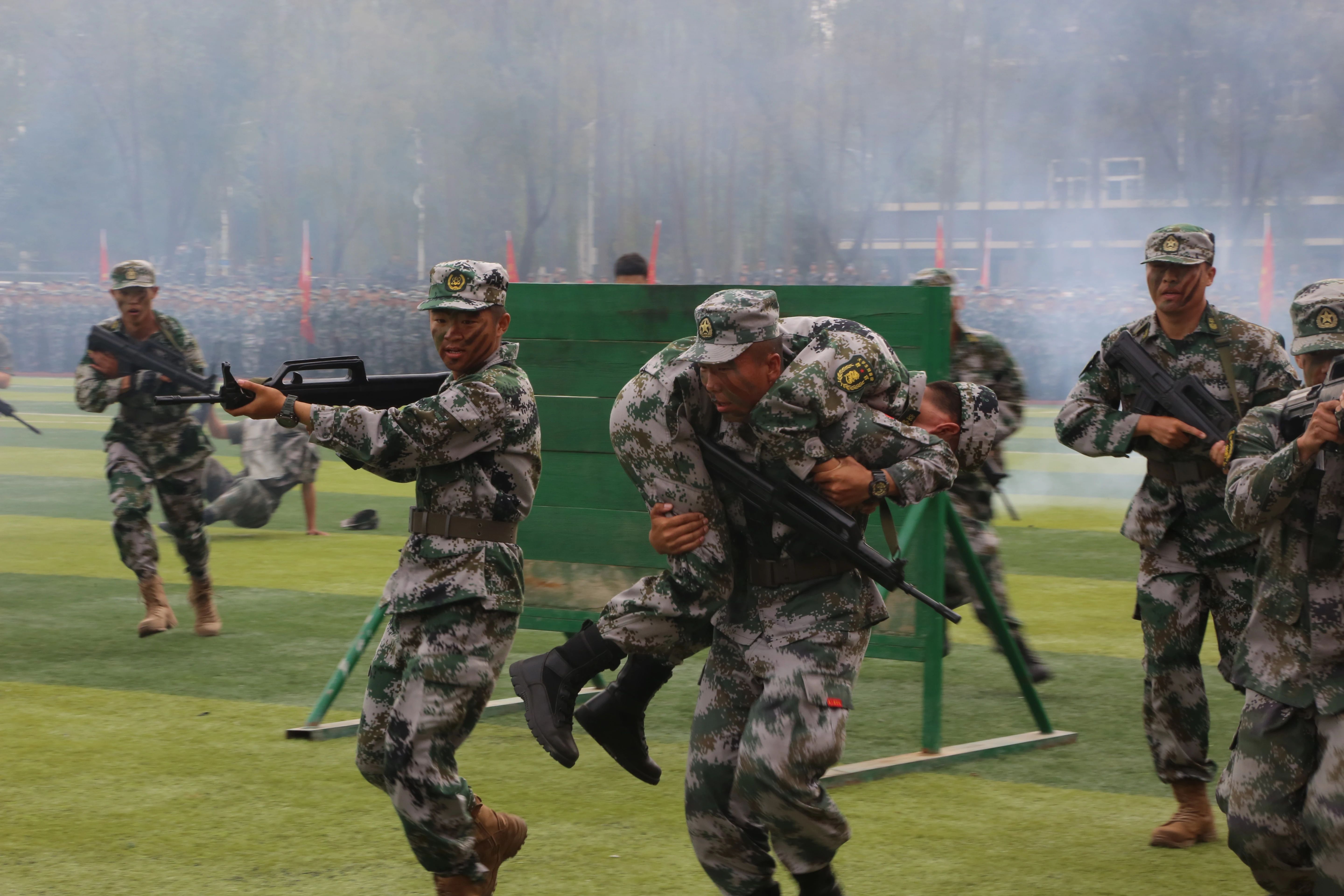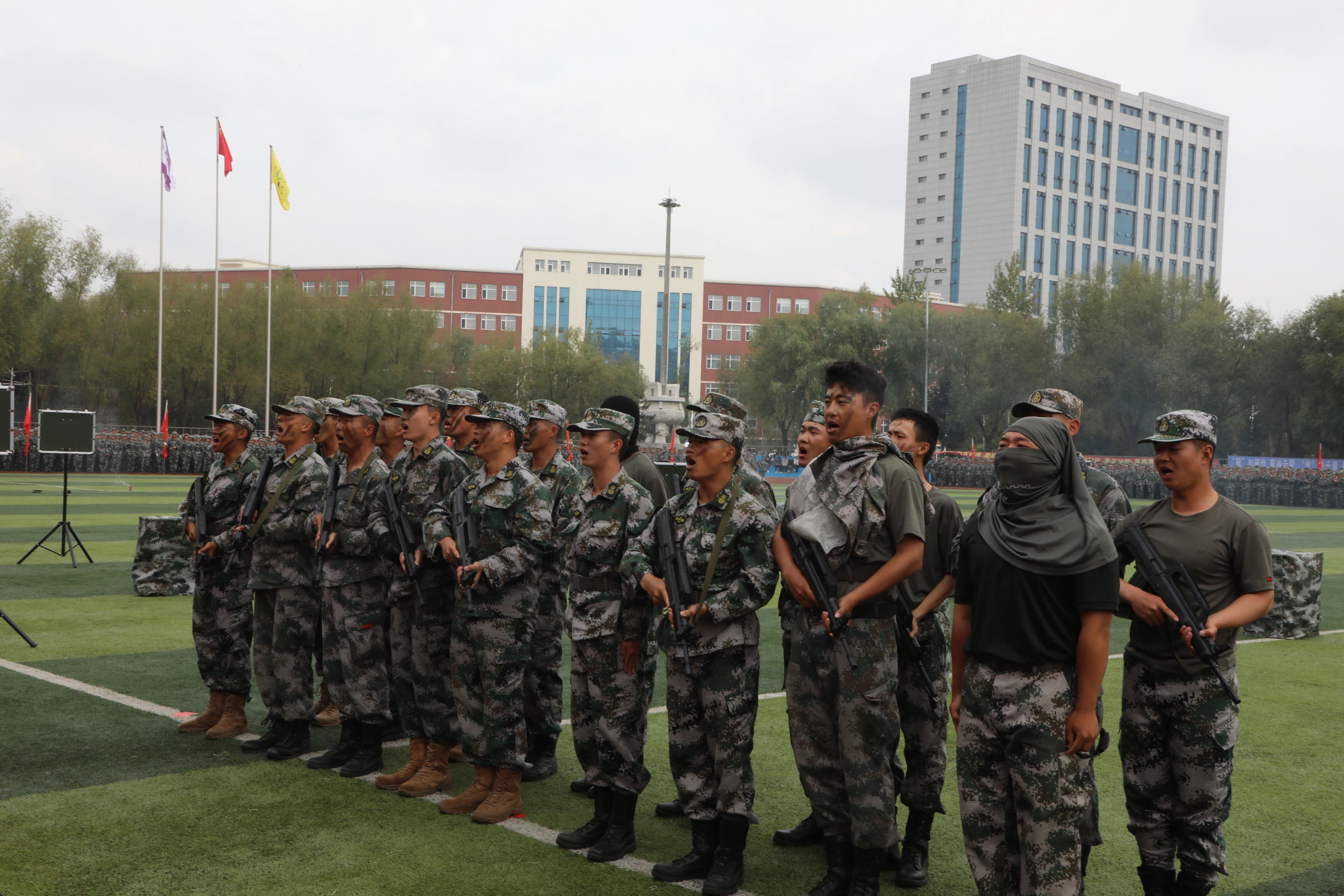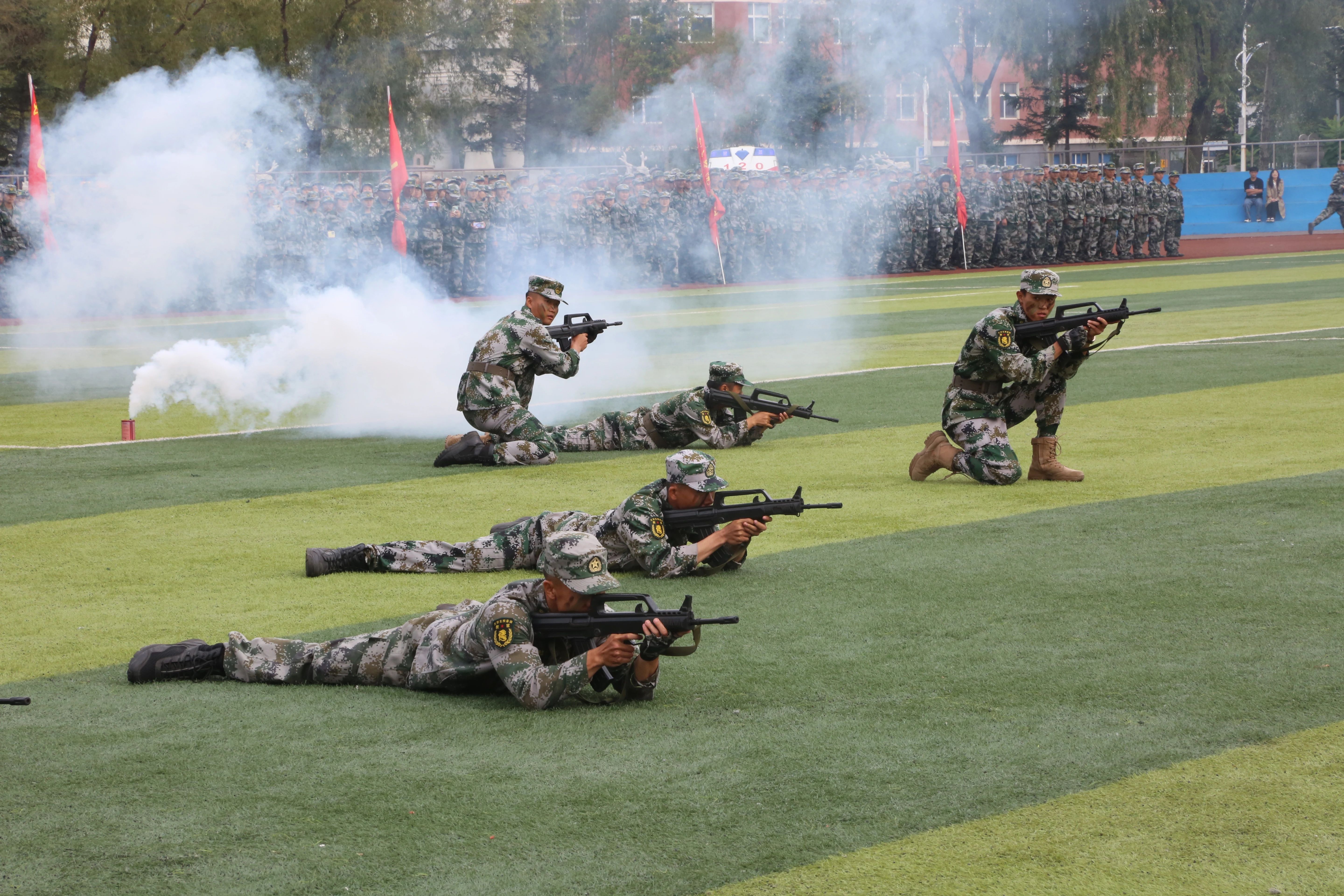 每一次的汗水,都是奋进的标志。每一次的呐喊,都是向上的力量。军训汇报表演中,新生们通过军体拳、刺杀操、战术演练等训练科目的演练,精彩地展现了军训塑造的良好风貌。