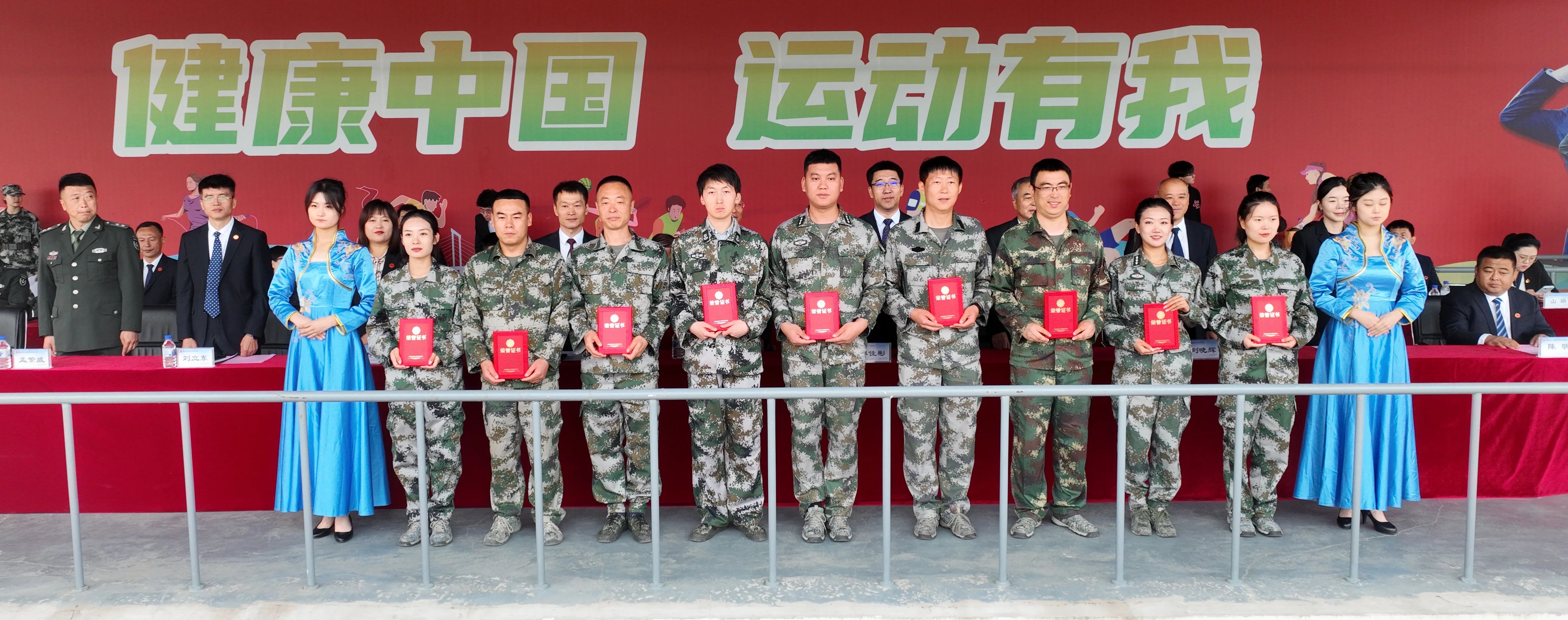 (主席台就坐领导为优秀训练标兵颁发荣誉证书)