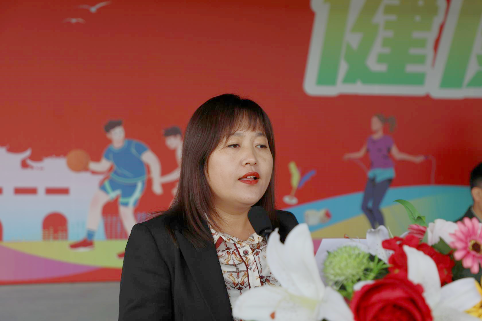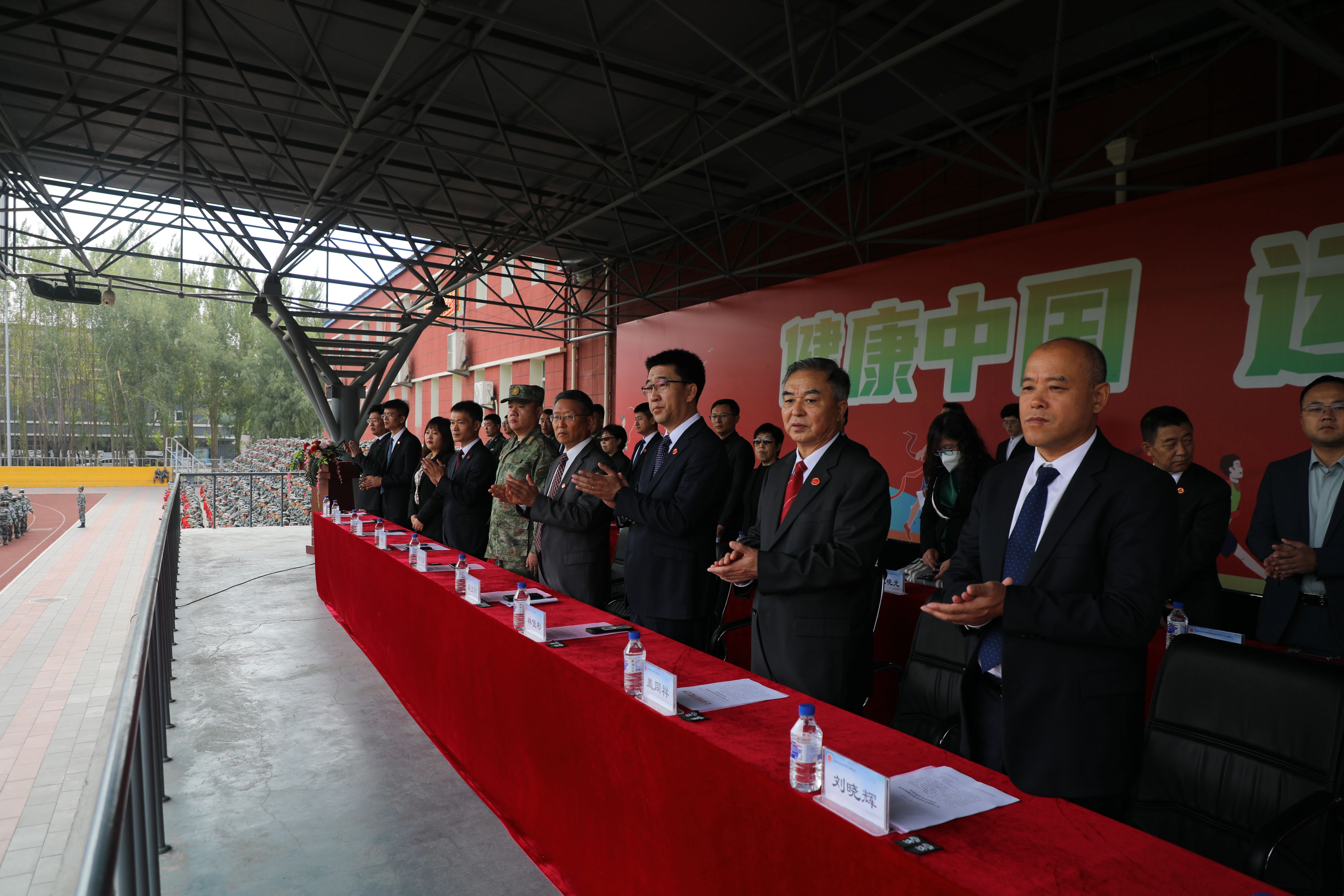(主席台就坐领导为优秀旗手颁发荣誉证书)