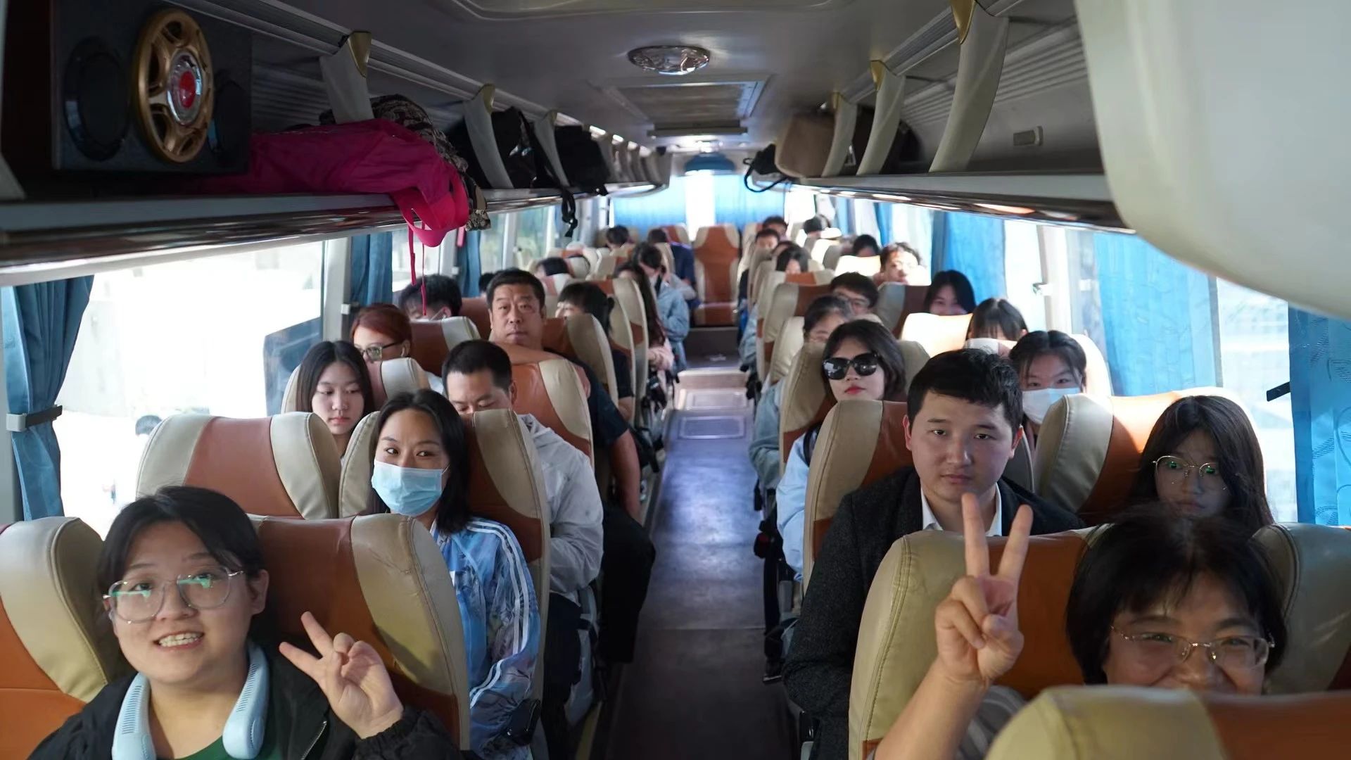 (2023级新生和家长们坐上开往长春科技学院的校车)