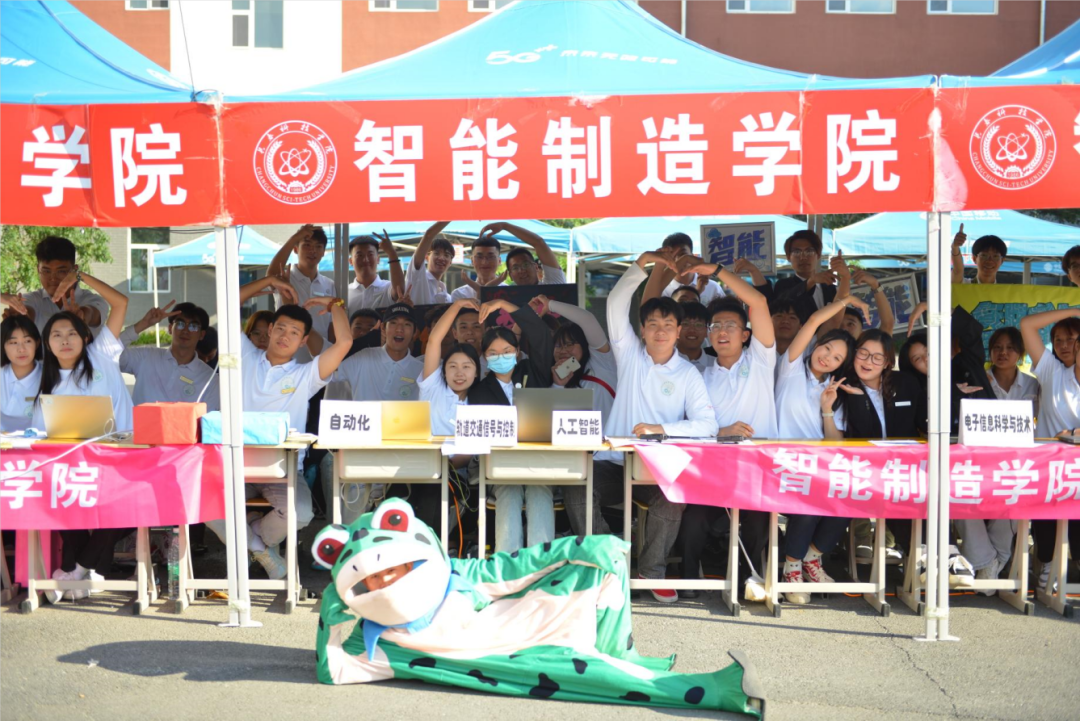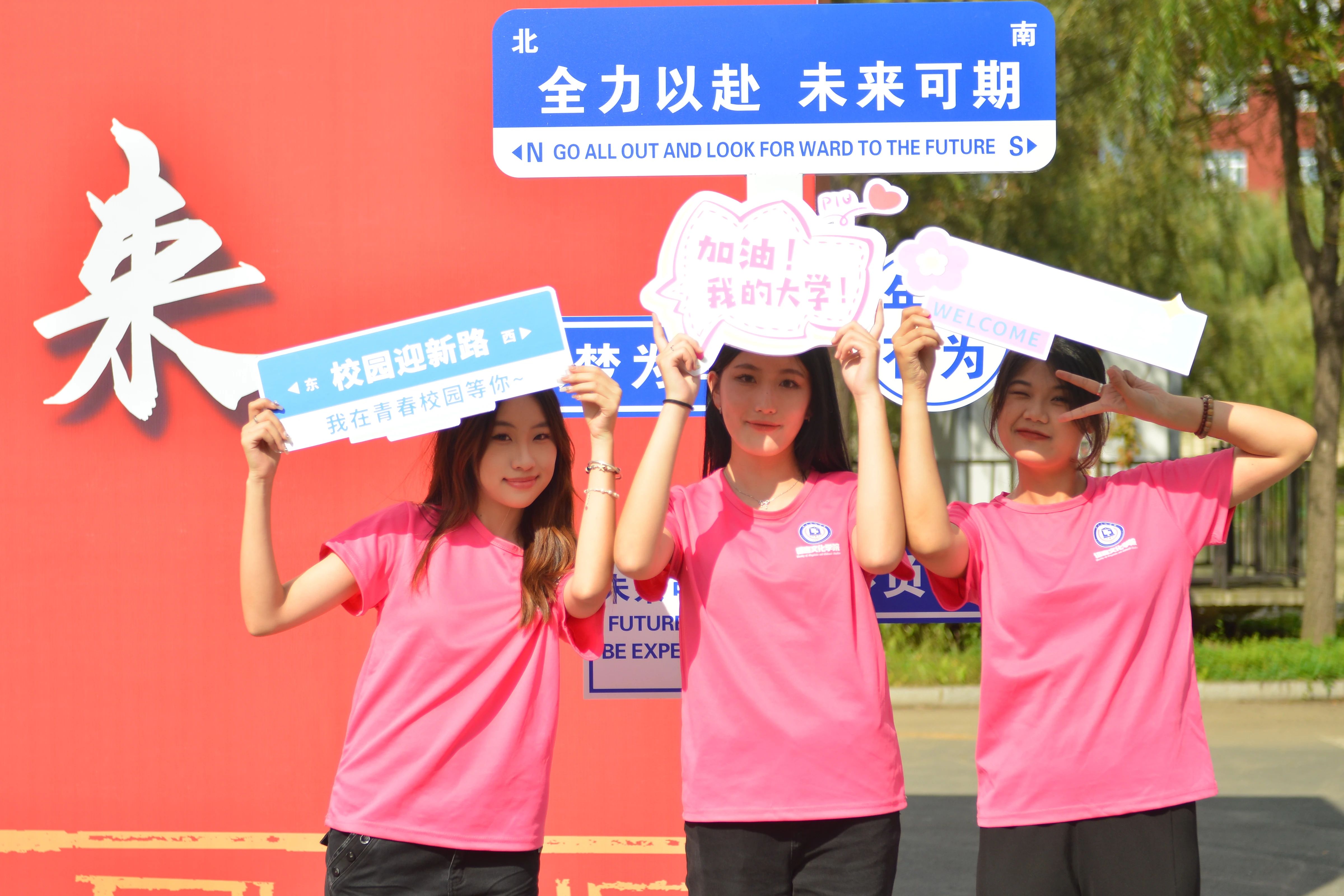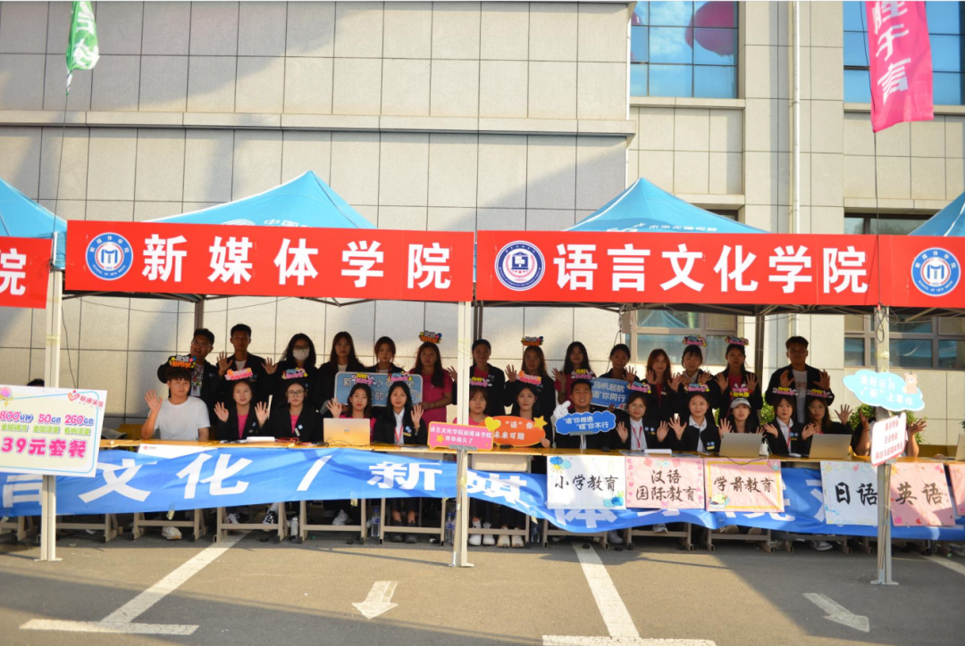 为迎接新生,各学院在接待点的布置上也颇具心思——语言文化学院新媒体学院制作了“后浪无畏‘正青春▪奋辑争先’向未来”签名墙,视觉艺术学院、智能制造学院派出的吉祥物活泼可爱,职业技术学院安装了移动电视,图文并茂介绍概况、专业、特色,校学生会社团联合会倾情献唱……迎新现场有趣又温馨。