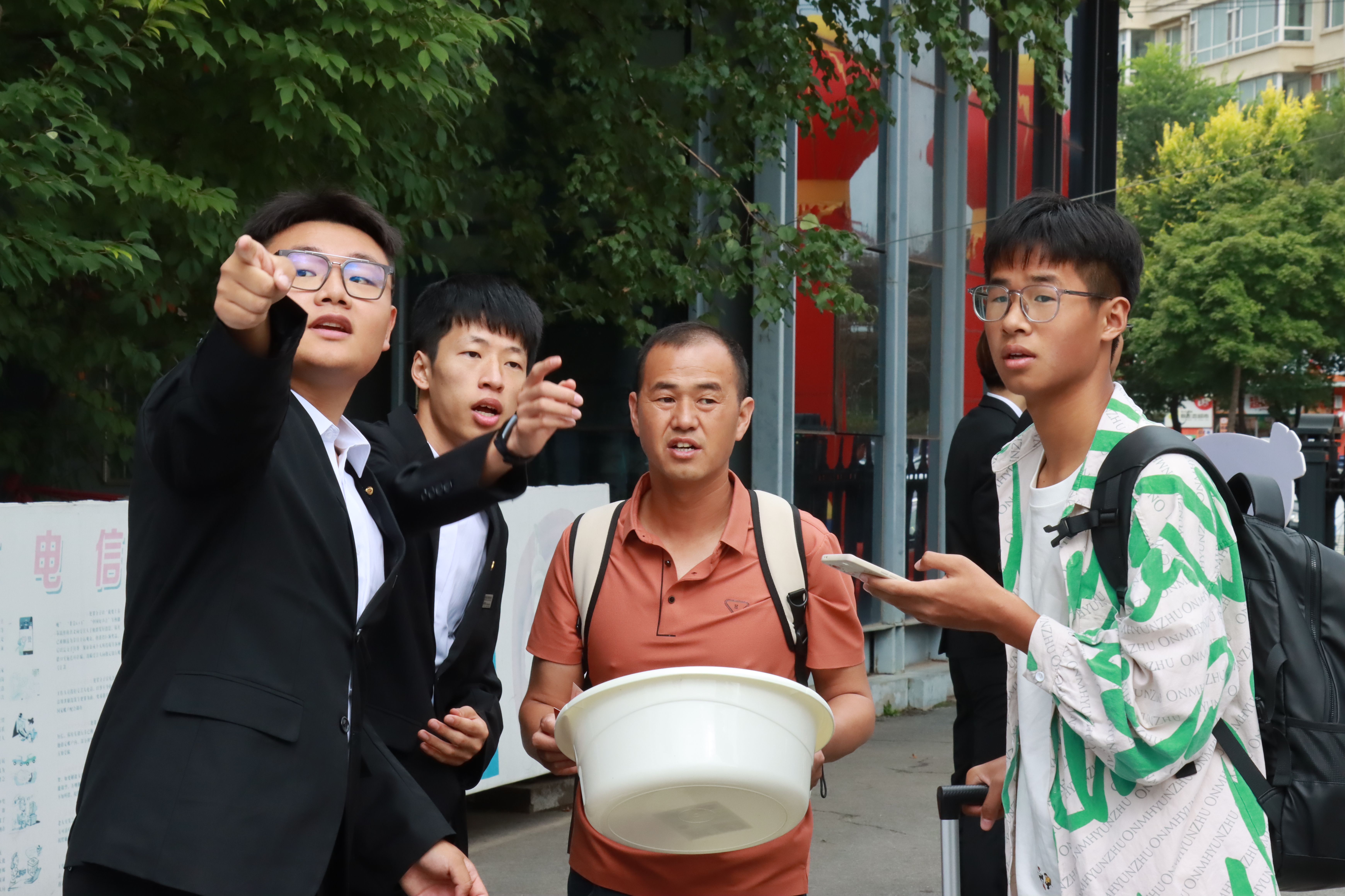 迎新现场,董事长张电达携校领导班子成员与前来报到的2023级新生亲切交流,向他们表示热烈欢迎,并慰问现场的工作人员与志愿者,仔细询问各点位迎新工作组织和新生报到情况。各部处负责人不间断巡视检查,了解工作情况,提供最好的服务保障措施。各分院院长和学科带头人及时解答新生与新生家长提出的学科专业等相关问题。为保障新生安心抵校,学校还在火车站设置了接站点,为每个新生暖心护航。