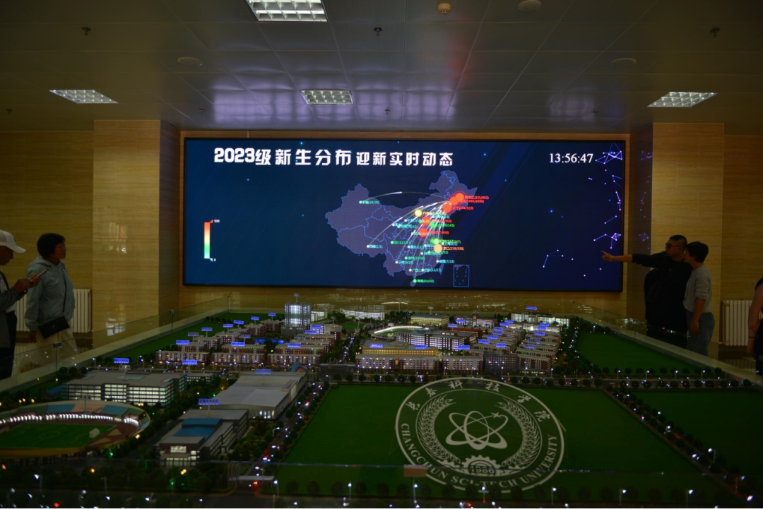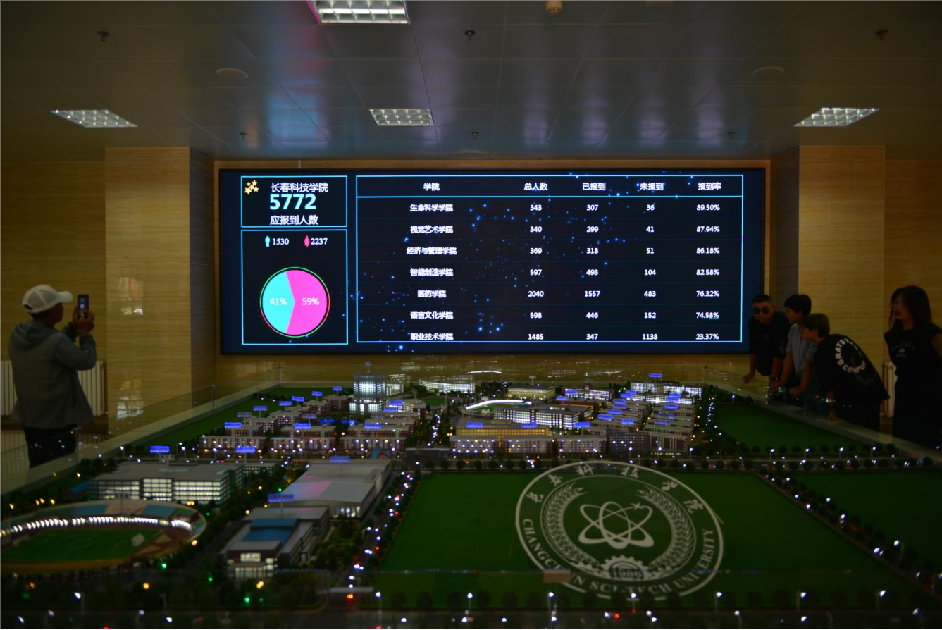 步入行政大楼,“2023级本科新生分布迎新实时动态”尽收眼底,现场所有采集到的学生信息均在后台进行大数据分析并实时展现在LED屏上。大屏幕上,各省份、各分院报到人数一目了然,数据信息实时更新,精确直观,让新生获取信息更方便、更快捷。在各点位,新生只要刷一下身份证,便可快速完成身份核验、材料提交、相关资料物品领取、入住手续办理等。