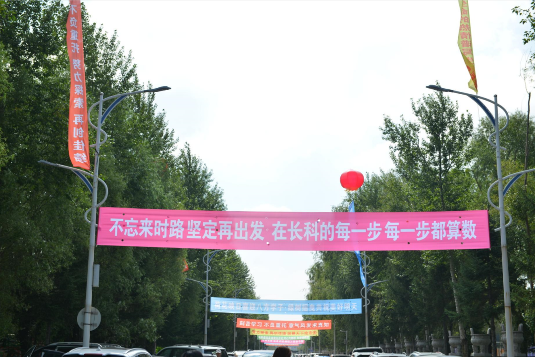 走进长科校园,迎新拱门矗立,道路两侧道旗飘扬,横幅悬挂……“崇德至善 笃学强能”“勤学弘毅 唯实创新”等标语内容让长科校园文化魅力尽显。