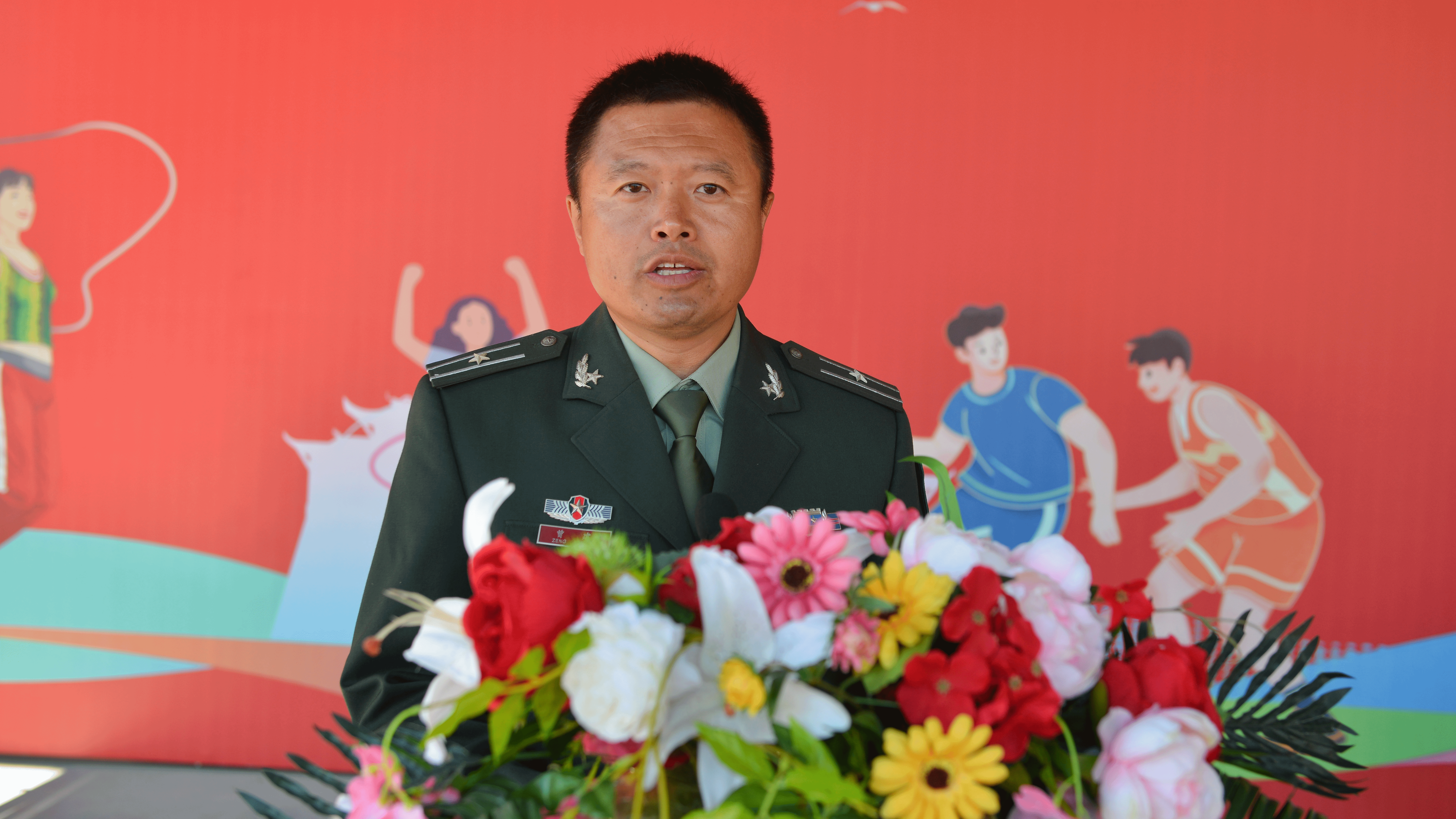 军训总教官曾建发言希望参训同学们继承和发扬人民军队不怕苦、不怕累,艰苦奋斗的精神,厚植爱国主义情怀,以实际行动交出自己大学时光中的第一份满意答卷。