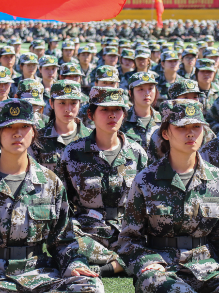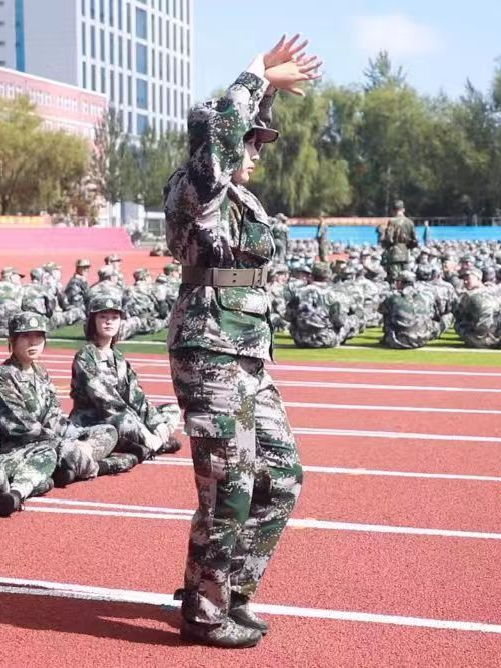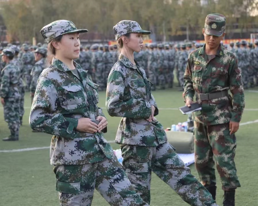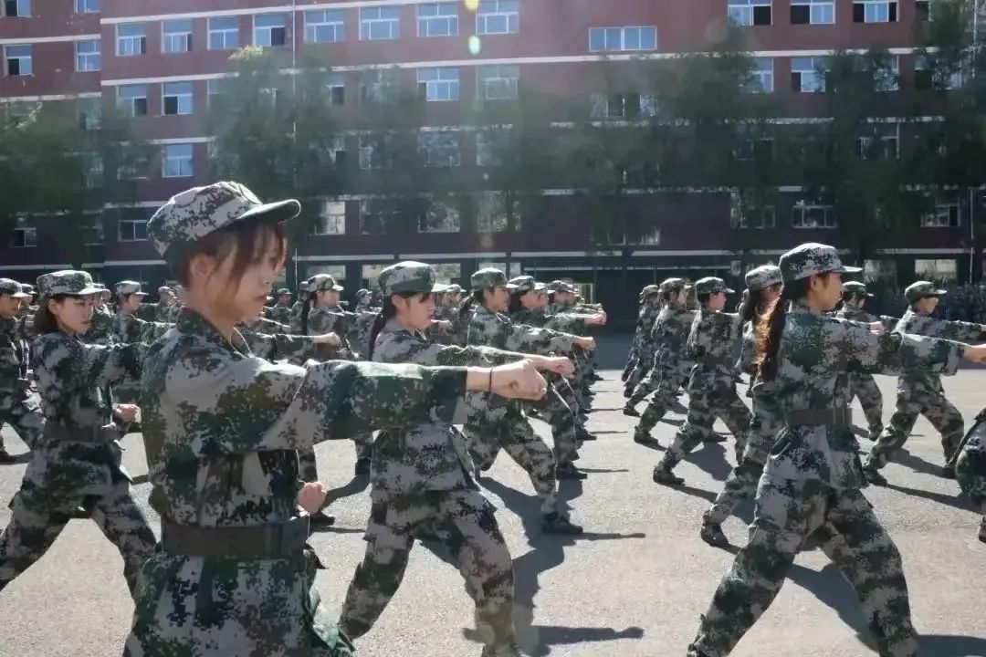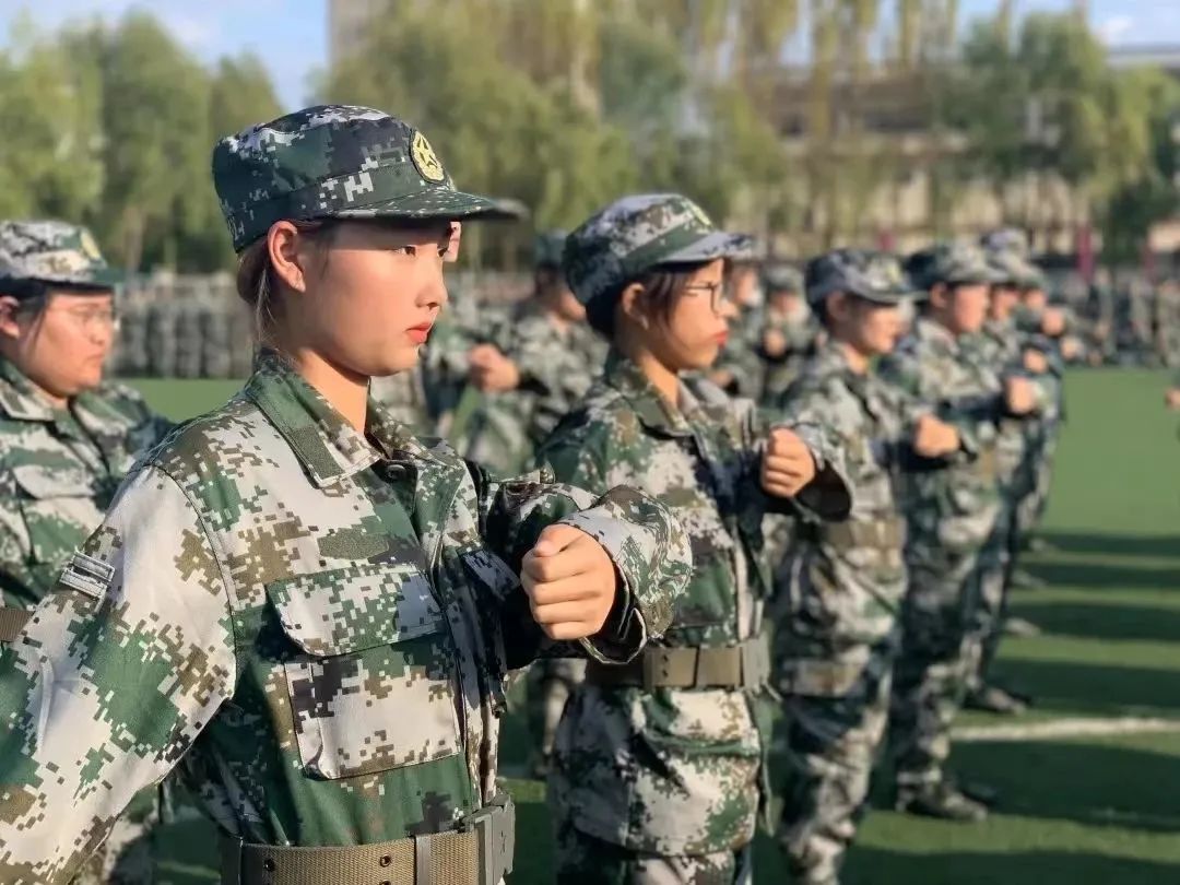 你们在训练中不畏艰辛,不怕困难,以坚定的意志和饱满的热情投入到训练中。不仅展示了女性的柔美,更展现了女性的坚韧和毅力。你们是军训中的一道亮丽的风景线,也是同学们心中的铿锵玫瑰。
