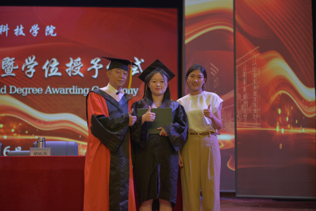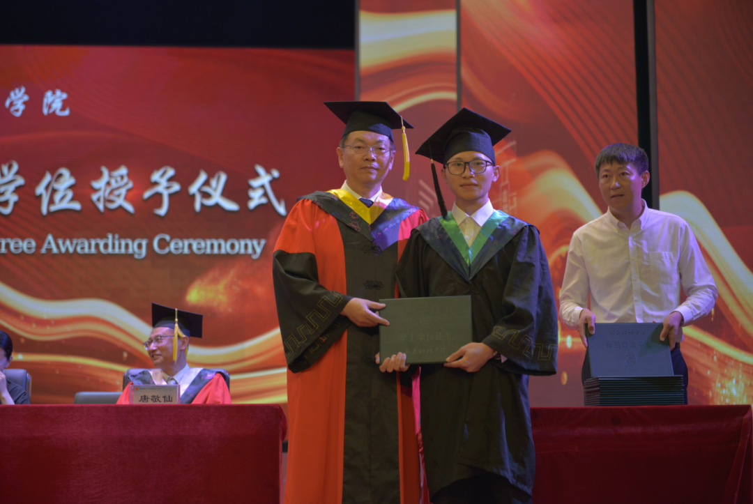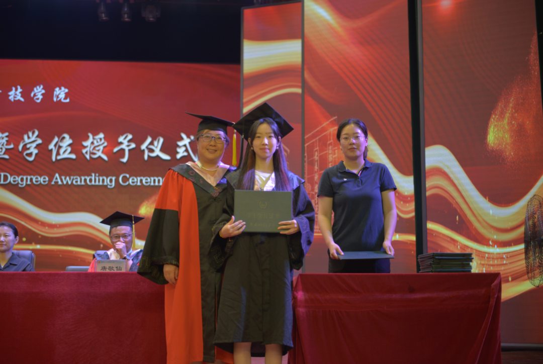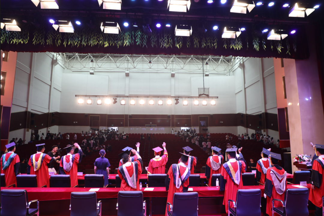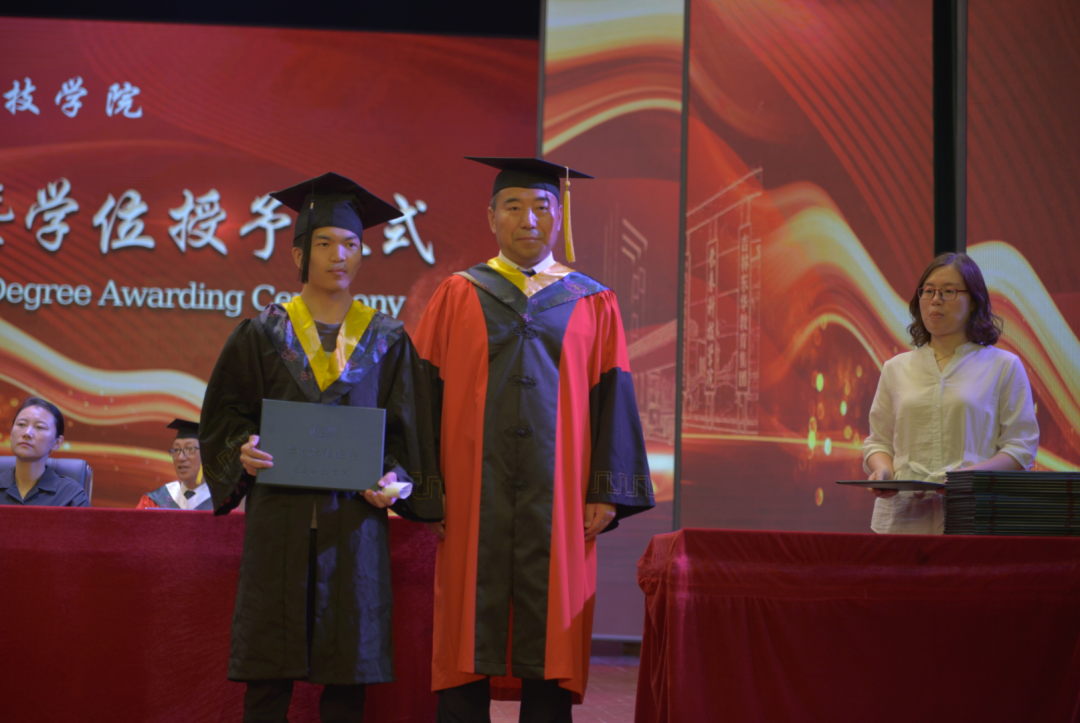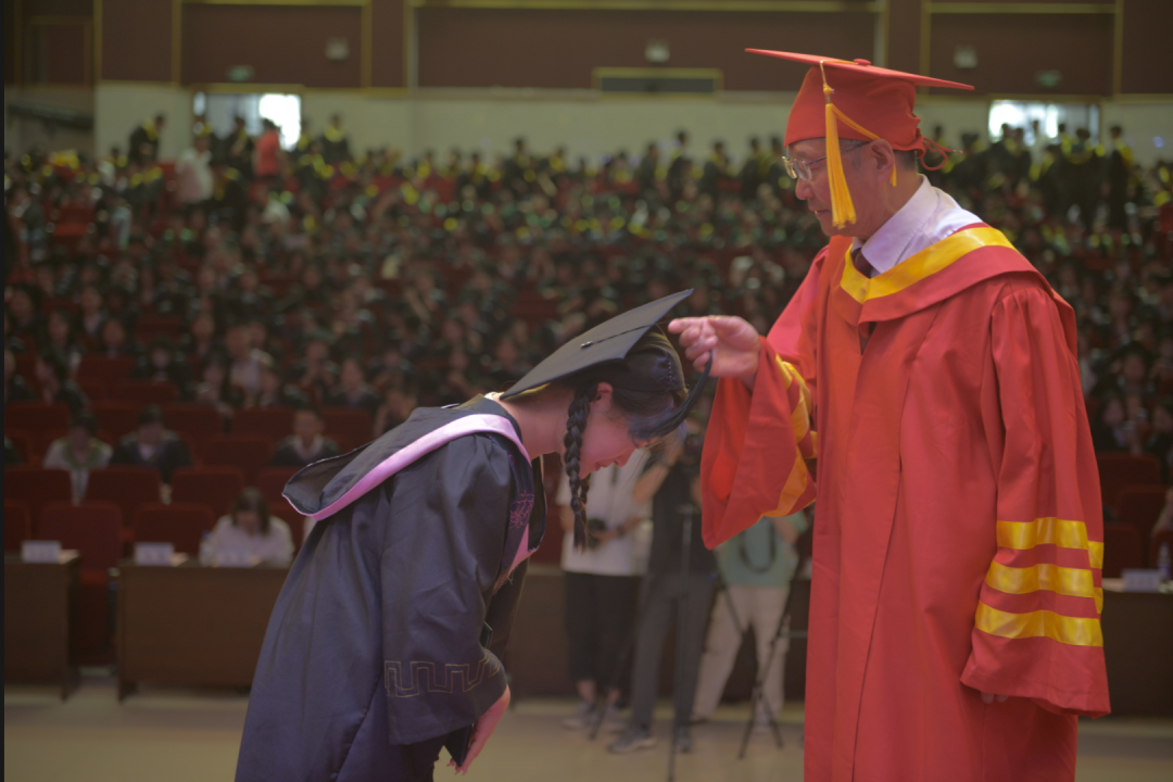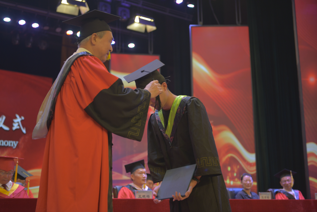 校领导和各分院院长逐一为毕业生拨穗正冠、授予学位、合影留念