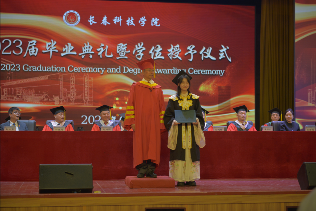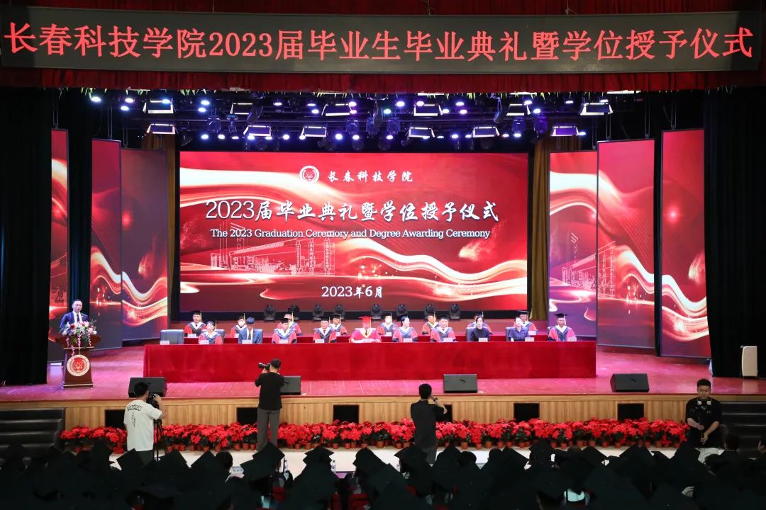 骊歌唱响,载梦前行。6月26日,长春科技学院在东鳌学术论坛—国际会议中心举行2023届学生毕业典礼暨学位授予仪式,4384名毕业生怀揣炽热青春梦想即将逐梦星河,奔向美好未来。校领导栾立明、王艳梅、盖同祥、宋学山、刘晓辉、张津格、刘立东、高芳和校学位评定委员会全体委员出席典礼。2023届毕业生及各学院领导班子成员、毕业班辅导员、教师代表在现场参加典礼。党政办公室主任付长春主持典礼。