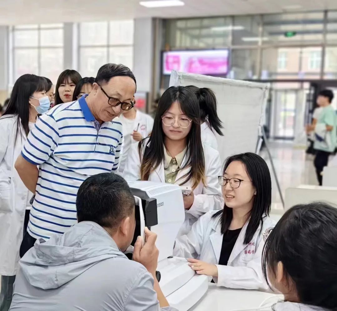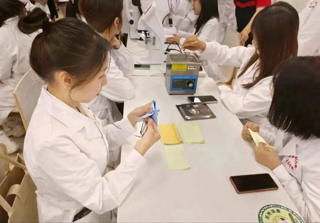 活动中学院眼视光专业的学生严格的按照老师们课上讲的理论知识,将理论与实践相结合,细心的为参与此次活动的同学和老师们清洗眼镜,检测视力以及维修眼镜。