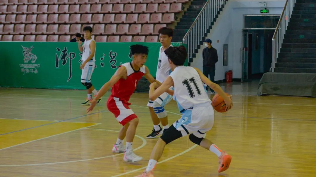 现代技工VS长春工校、华翰通航VS建设技工比赛分别在体育馆一、二场地进行,13:00分,随着裁判哨声的响起,比赛正式开始。妙传,争球,跳投……比赛中,队员们精妙传球、巧妙配合、精彩上篮。比分不相上下。15:00分,吉林职业VS中光技师,长信技工VS省工业技师比赛开球,跨下运球、巧妙过人、远距投篮……紧张激烈、扣人心弦的角逐不断上演,给观众们带来的一场丰富的视觉盛宴。