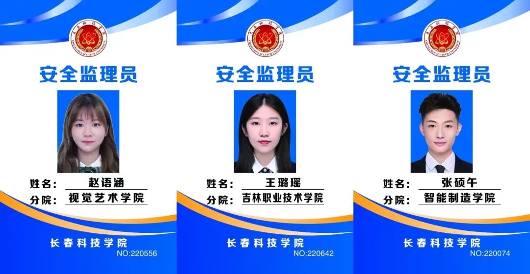 培训开始前,各分院已经按照学校制定的《关于建立安全监理员队伍的通知》要求,在学生中按照5%的比例选准配强了安全监理员队伍。学校安全委员会办公室为每名安全监理员统一制作了证书。