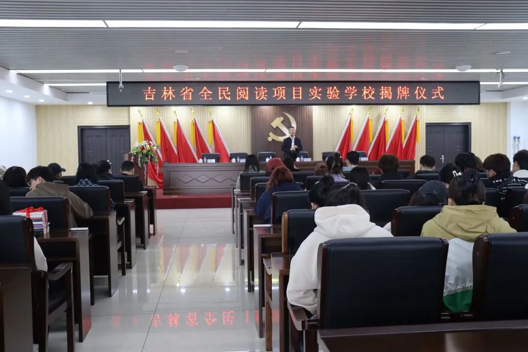 仪式上,赵云良、宋学山共同为吉林省全民阅读项目实验学校揭牌。
