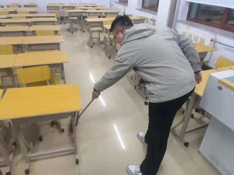 考试结束并在确保所有考生离场后,志愿者们重返考场完成最后的收场工作,他们将考试物品回收,清理打扫好考场卫生,将考场恢复到原有模样。在志愿者们辛勤地工作下,本次考试画上了圆满的句号。