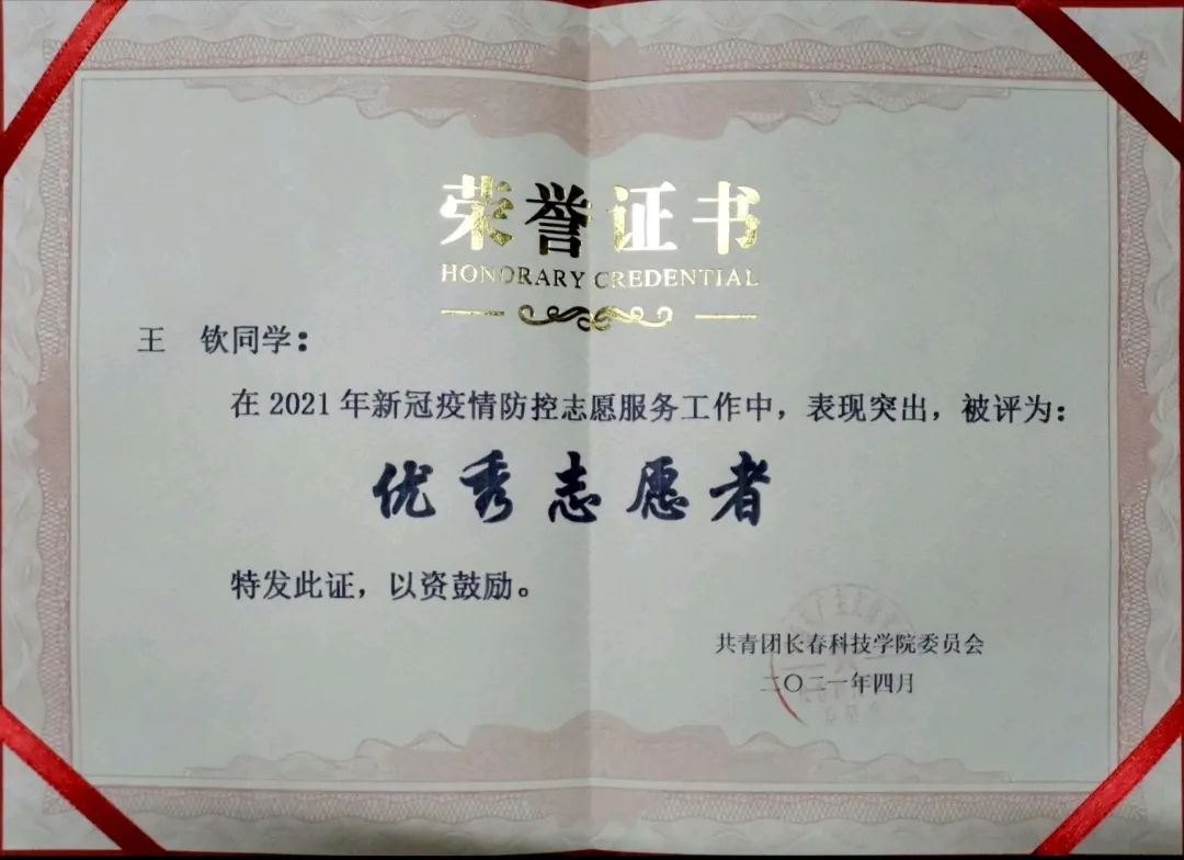 他积极响应国家政策,参加疫情防控工作,在抗击疫情的伟大实践中汲取爱国养分。根植家国情怀,树立远大理想,以饱满的热情投身到疫情防控一线,多次获得校级以上表彰。
