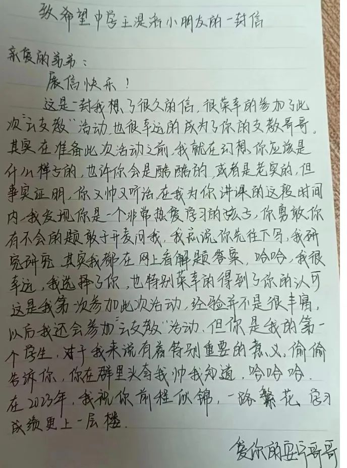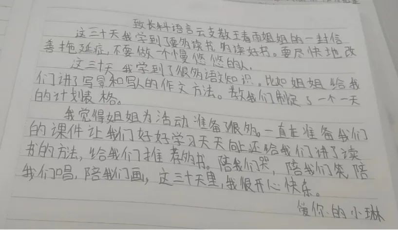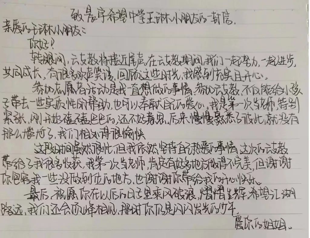 “你过得好吗,祝好盼复。”那些没有来得及对望的时刻,那些藏在心中深处的真挚的眼神,那些我们隔着屏幕相见的瞬间,都是诚恳的期冀与等待,蒲公英筑梦公益团云支教的志愿者和小朋友们,见字如面,展信舒颜。