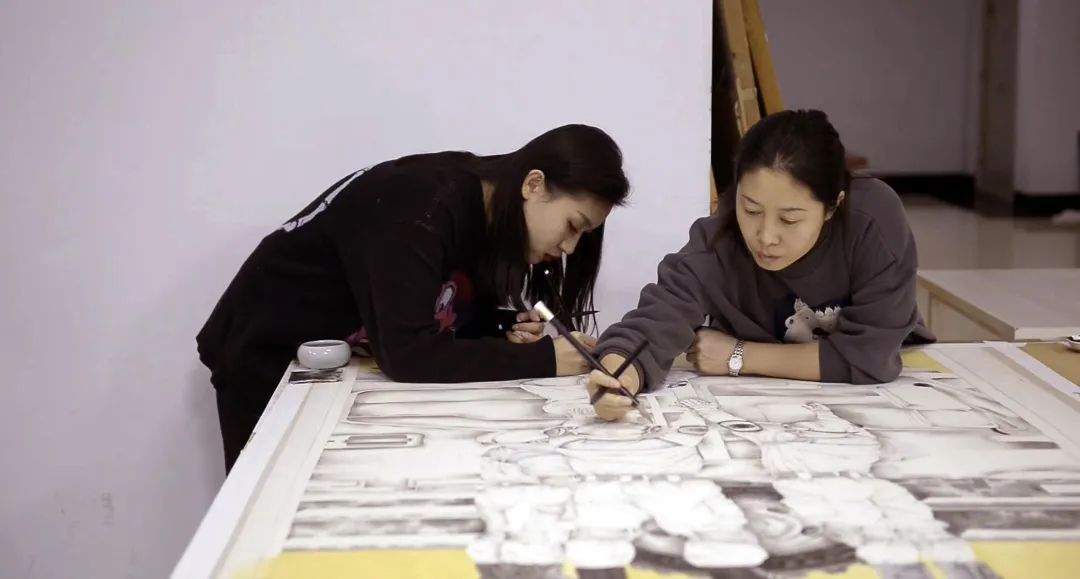 在这段时间里,李文成院长始终坚守学校,和学生们一起讨论创作中出现的问题,鼓舞同学们在创作过程中要方案周密,敢于创新,大胆实践。学生每天坚持作画12个小时以上,经常到深夜才休息。“这是大学生活里最值得纪念,最有收获,最幸福的一段时光”,看到自己的作品即将完成,所有同学都表达了相同的感受。从他们堆满笑容的目光里,看到了他们对自己所学专业的热爱和对未来成长的自信。(学生记者:王丽岩)