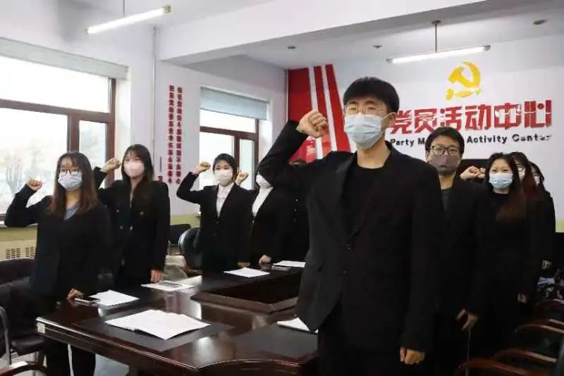 学生党支部书记曹莹对成为中共预备党员的同志表示由衷的祝贺,并强调要时刻牢记自己的“第一身份”,发挥党员先锋模范带头作用,在学习生活中带好头,做表率,不忘初心,牢记使命,冲锋在前勇担当,越是艰险越向前,扎实学好党的先进理论和科学文化知识,为努力实现第二个百年奋斗目标贡献青春智慧和力量。最后,在学生党支部书记曹莹的带领下,学院全体学生党员重温入党誓词,大会圆满落下帷幕。