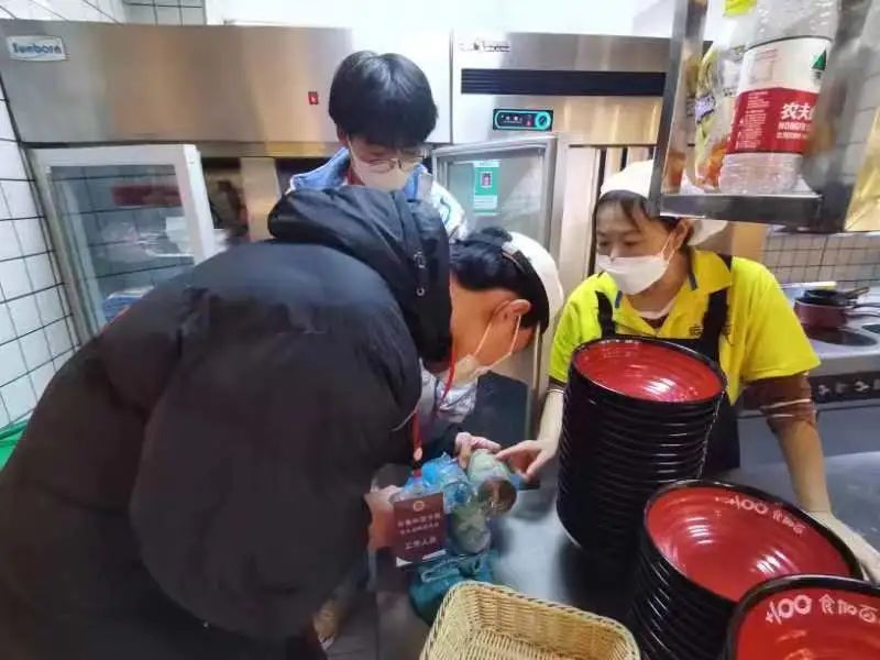首先,我们对每层楼的档口进行检查,餐厅经理积极配合校权益部工作人员进行检查并为我们介绍情况,工作人员深入各个档口的后厨,对菜品的新鲜程度,调味品的保质期等进行认真调查,我们对样品进行了检查并记录以便于保障全校师生饮食安全,各个档口的工作人员也积极配合权益部的工作并积极配合并为我们讲解各个品类品种的用途。在这次检查中,我看到了餐厅后厨的整洁,我相信食堂未来还可以继续为全校师生提供有安全和更好的服务。