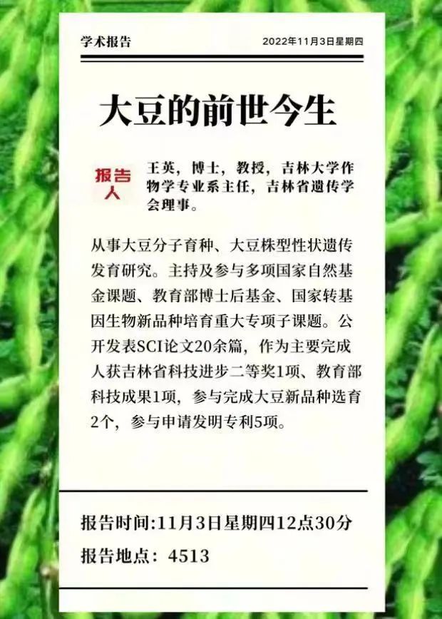 中国是大豆的原产地,是最早驯化并种植大豆的国家,栽培大豆至今已有四五千年的历史。让我们深刻了解到了大豆的“前世”和“今生”。让我们在掌握大豆生物学特性的同时,了解它的驯化历史、传播及分子生物学基础,并从科学的视角重新审视,让师生看到了不一样的大豆。