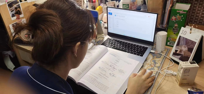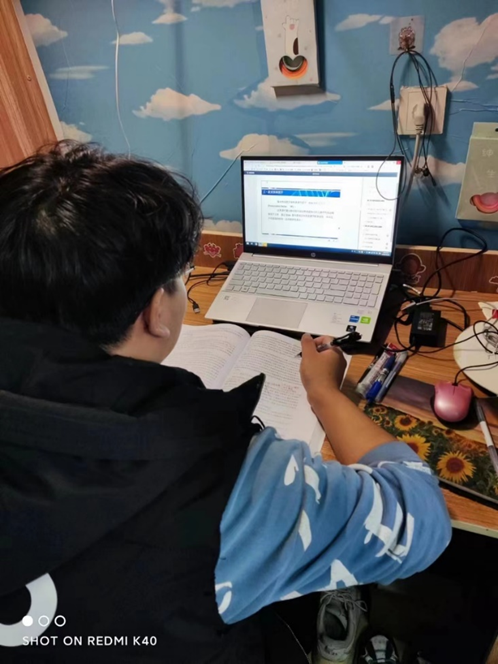 虽然我们的课堂从教室又搬到了宿舍,但它阻碍不了我们学习的脚步。相信在我们师生共同的努力下,一切皆安!(学生记者:慈航)