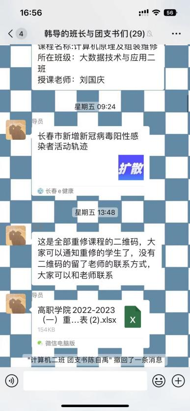 因疫情封校管理,韩老师注重学生心理健康教育,积极利用互联网平台及时与学生沟通,嘱咐各班级班长和心理委员积极关注班级学生心理状况,帮助学生树立健康自信的心态。为给予学生最大的心理慰籍,他深入学生宿舍,了解学生学习、生活等方面需求并及时帮助处理问题,真正做到“生有所呼,呼必有应”,缩短了学生与老师之间心与心的距离。