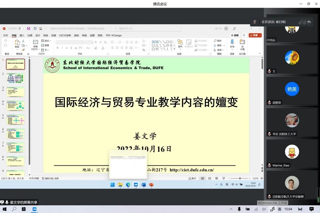 2022年10月16日,学院国际经济与贸易专业全体教师参加了东北地区(黑吉辽)国际经济与贸易专业虚拟教研室建设研讨会并进行相关问题的讨论。本次会议采取线上的方式进行,来自东北地区所有本科(研究生)高校的国际经济与贸易专业教师参加。国际经济与贸易专业虚拟教研室(区域型)于2022年6月入选教育部第二批虚拟教研室建设单位。其目的旨在促进东北地区高等院校国际经济于贸易专业教学质量的整体提升,提高各高校专业教师的教学水平,增强学生的专业素质技能,加强区域各高校间国际经济与贸易专业协同互动,通过优势互补,实现共享、共建和共同提升。