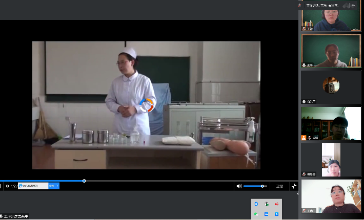 护理专业王洋主任结合护理专业课程特点进行了教法展示,《护理学基础》这门课程是理论与实践1:1,由于线上授课的局限性,实操部分,王洋主任采取视频播放的形式,充分利用教学资源,虚拟仿真平台学生无法登录,王主任采取录制的方法,将视频录制,再播放给学生进行学习,以及利用其它学校的教学实录。同时王洋主任还提到,由于护理专业聘请的外聘教师多为临床医护人员,无法达到集体备课,为了保证不同课程之间的连贯性,以及教学的一致性,护理专业建立了教师小群,方便教师之间的沟通。