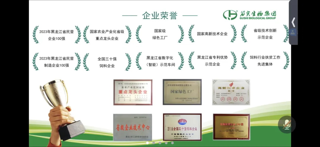 线上宣讲会上,主持人先播放一段宣传片对谷实生物集团进行了简单介绍。谷实生物集团于2004年创立,是集饲料研发、生产、销售及种畜繁育、生猪养殖、产业链一体化的集团企业,秉持“同成长、共分享”的核心理念,以科技推动我国畜牧业发展。集团现有饲料、养殖、综合三大业务板块,30余家子公司,1200余员工。对外坚持以客户为中心,构建产学研生态圈。作为高新技术企业,荣获“农业产业化国家重点龙头企业”等多项荣誉。其养殖板块有十余家种猪繁育及生产基地,母猪、母羊存栏量可观,年出栏生猪60万余头,采用公司 + 农户—农场合作养殖模式,保障生猪质量安全,带动农户发展,推进区域养猪产业现代化。公司+农户一农场的合作养殖模式不仅带动农户养殖事业的发展,同时也加快了谷实养殖板块的快速发展,进一步推进了区域内养猪产业的的规模化、标准化、现代化。