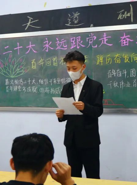 会议伊始,各班宣讲人通过分享党史故事,介绍党的百年光辉路的相关知识。在这些感人至深的党员故事中,无一不反映出中国共产党人全心全意为人民服务的赤诚之心。他们无私奉献、不惧艰难、不怕牺牲的感人事迹,给在座的同学们都进行了一次洗礼,也激发了同学们对学习党史的热情和兴趣。